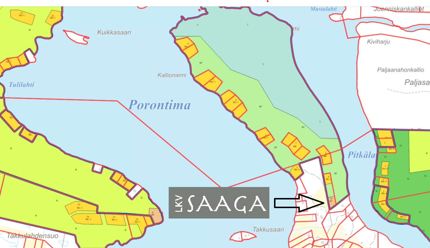 Alue on Porontiman rantakaava-aluetta, erillispientalojen korttelialuetta. Rakennusoikeus 250 m², rakennuspaikan kokonaisrakennusoikeus saa olla korkeintaan 350 m².