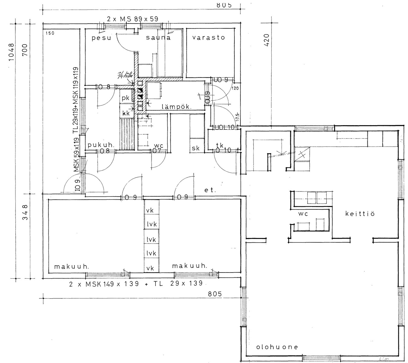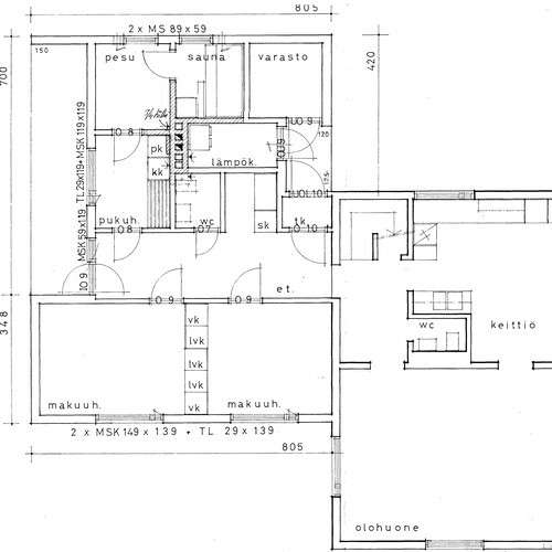 2mh, oh, k, pkh, ph/s, 2wc + yläkerta