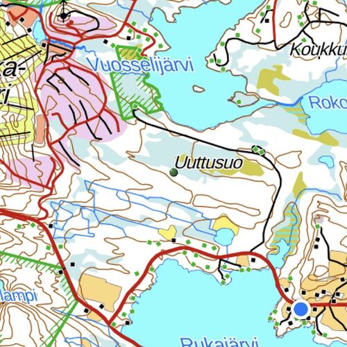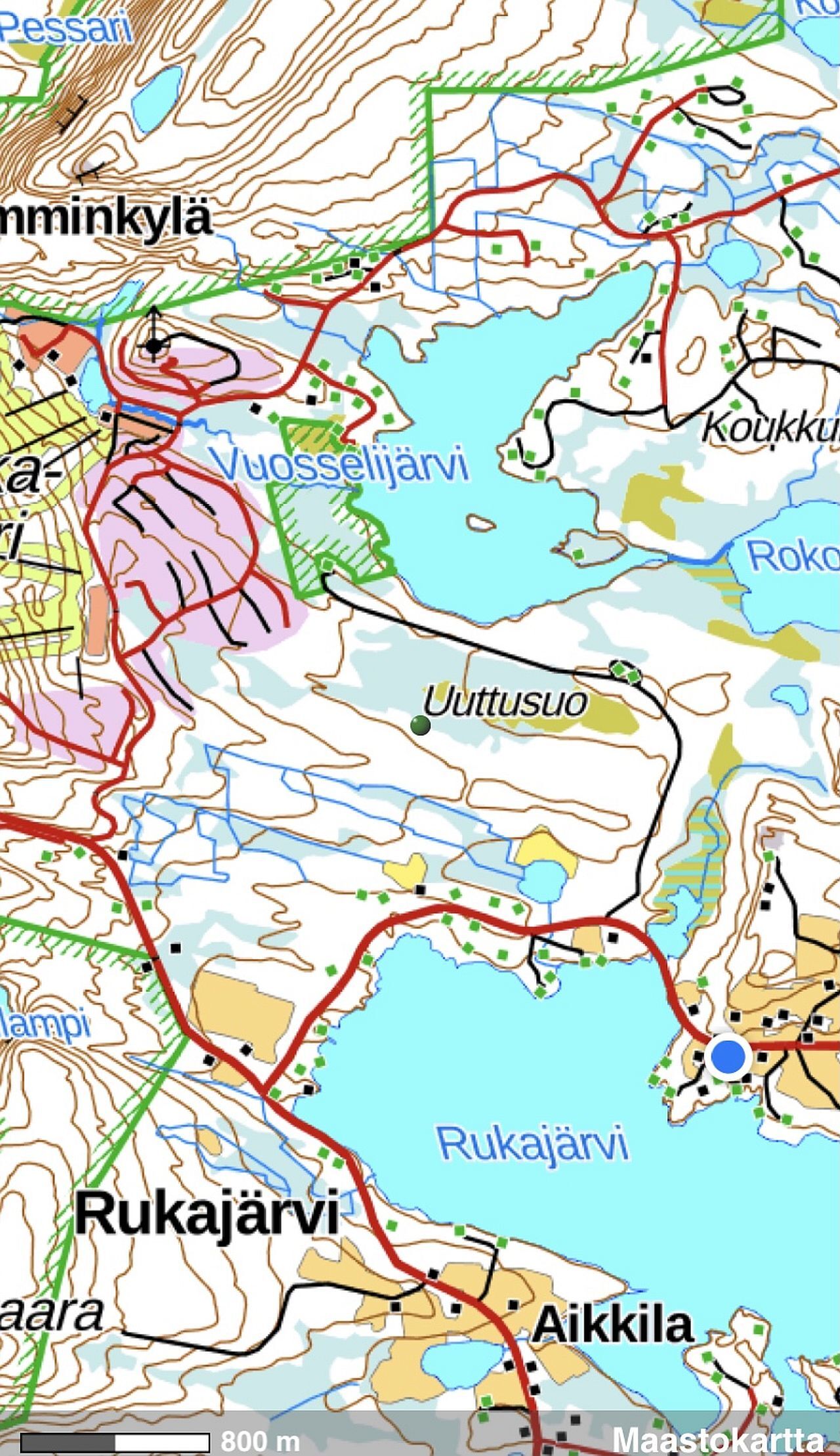 Palvelut: Rukan kävelykylä noin 6,50 km. Rukan rinteet ja palvelut noin 10 min. ajomatkan päässä. Lähin hiihtolatu kulkee Rukajärven jäällä.