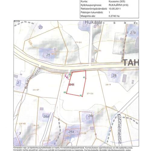 Tämä etelään avautuva 2740 m² tasamaatontti sijaitsee peltojen kupeessa Tahkolanrannantien varressa, Rukajärven ranta-asemakaava-alueella.