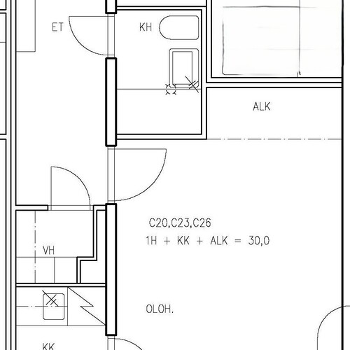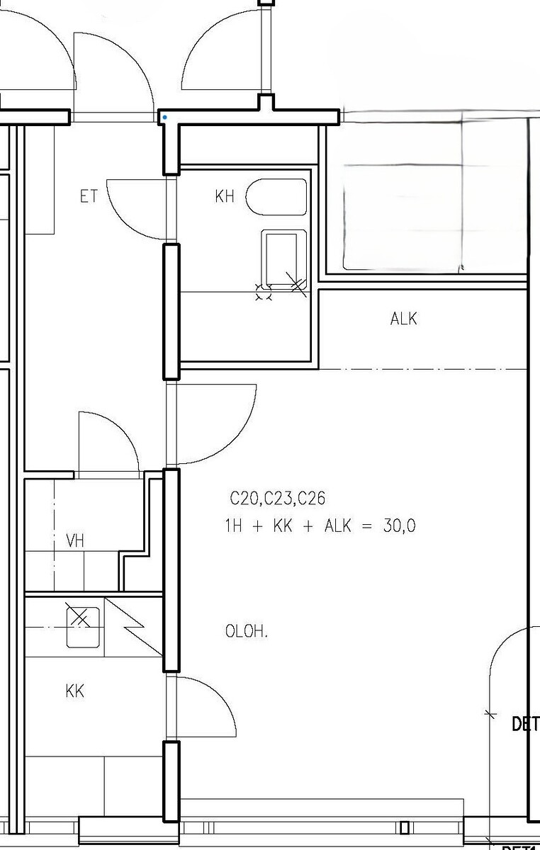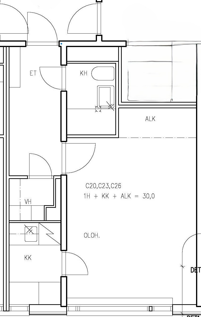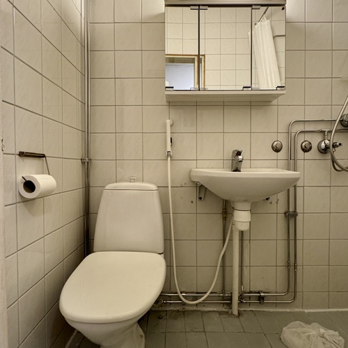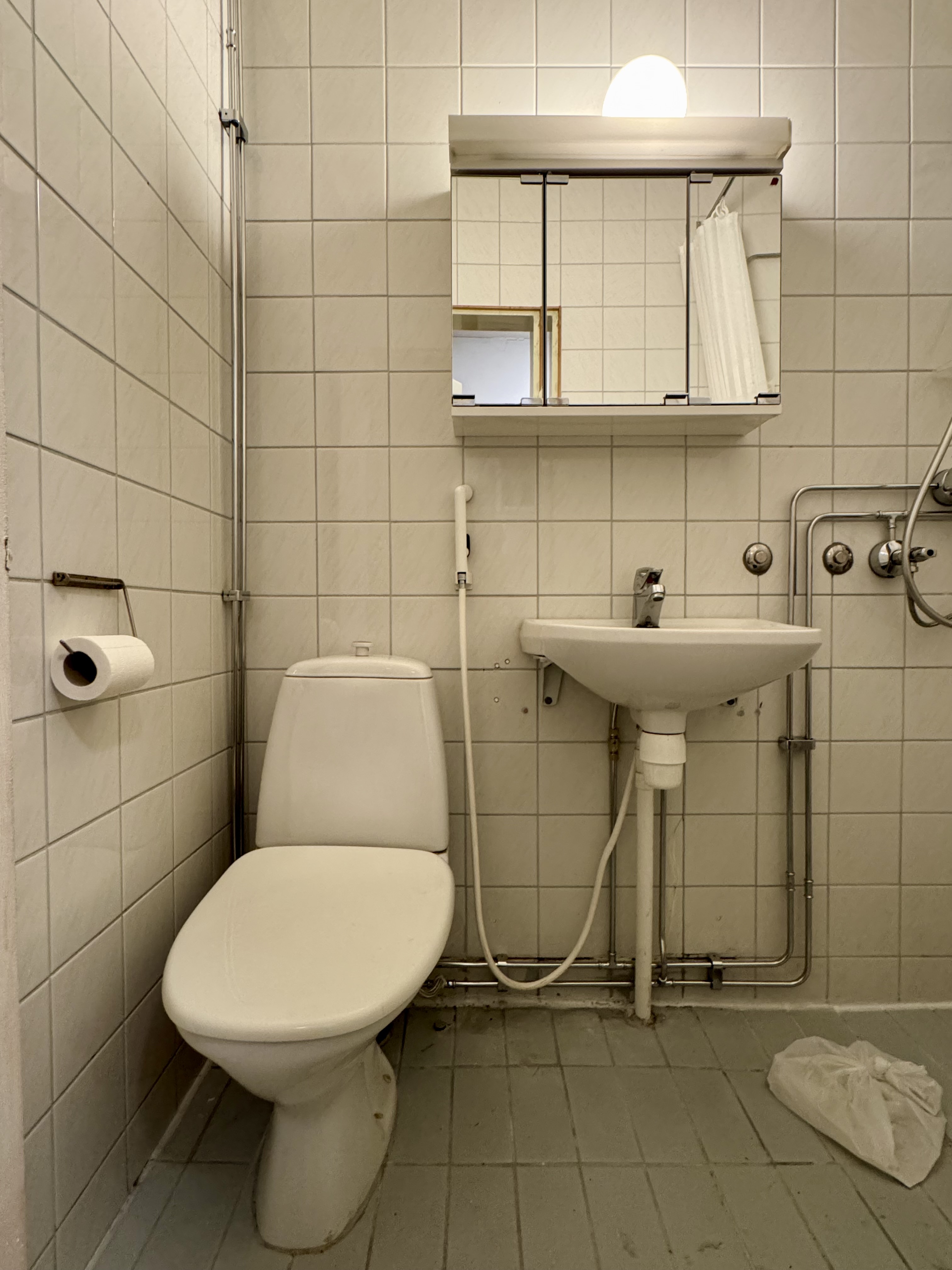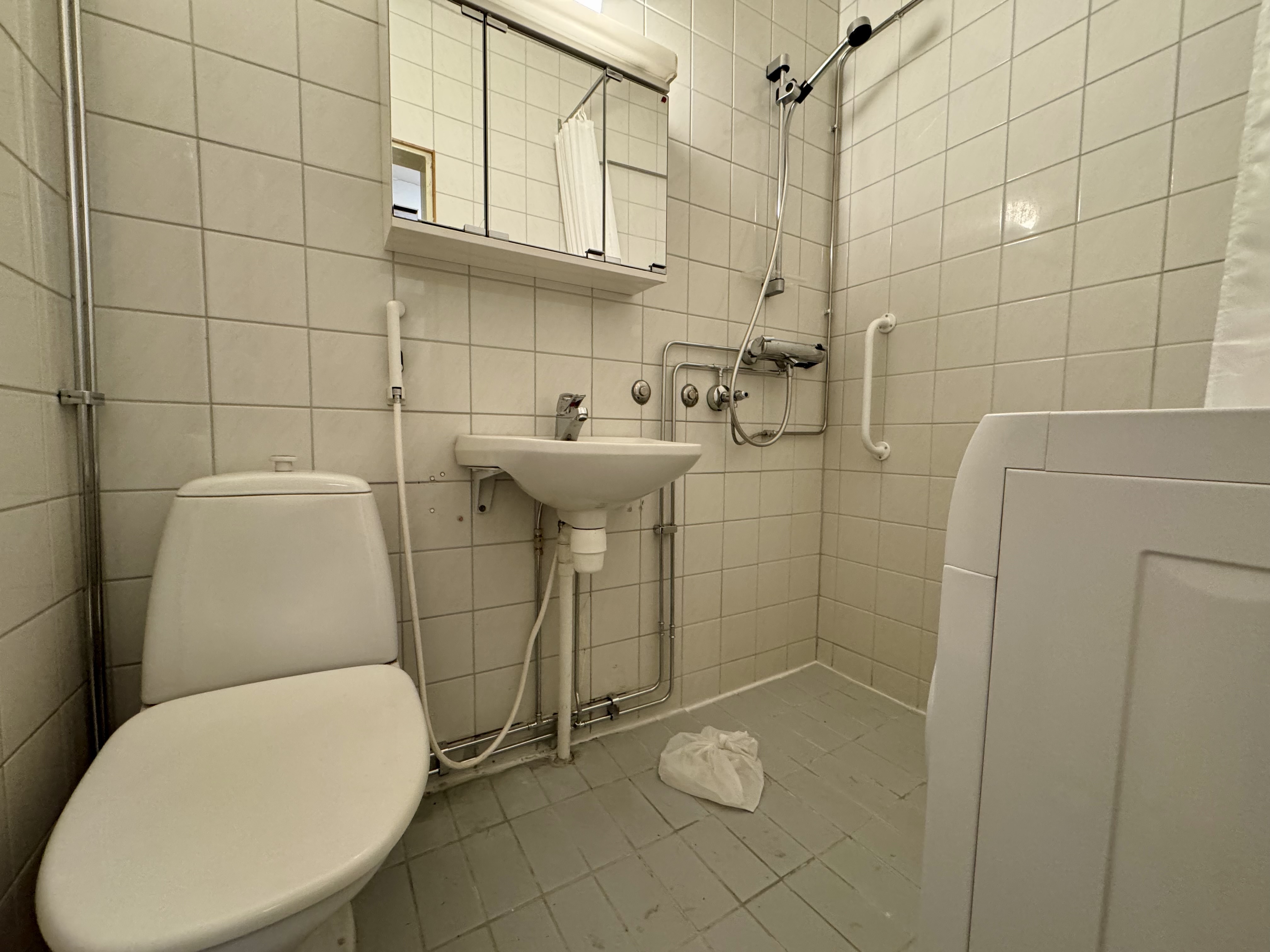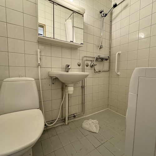 Varusteet: pesukoneliitäntä, suihku, peilikaappi, kiinteät valaisimet