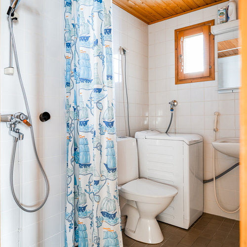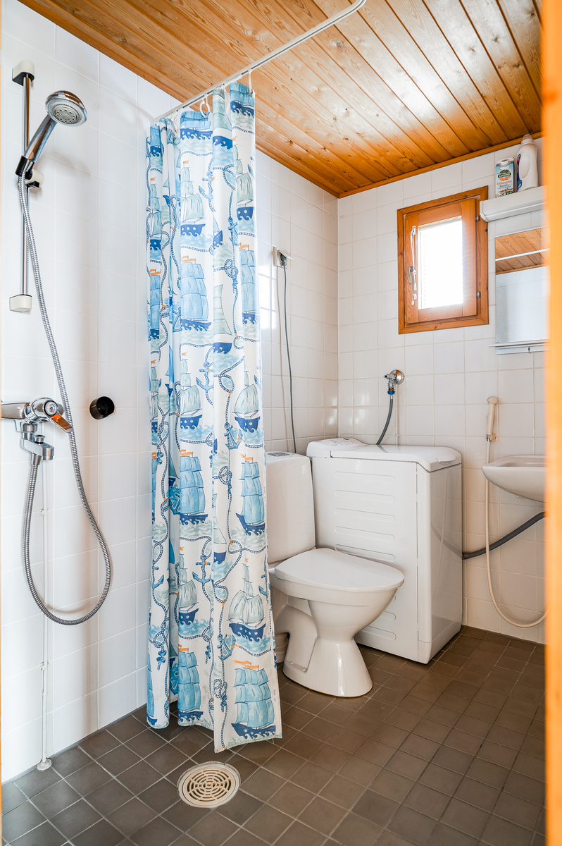 Varusteet: pesukone, pesukoneliitäntä, lattiakaivo, suihku, bidee-suihku