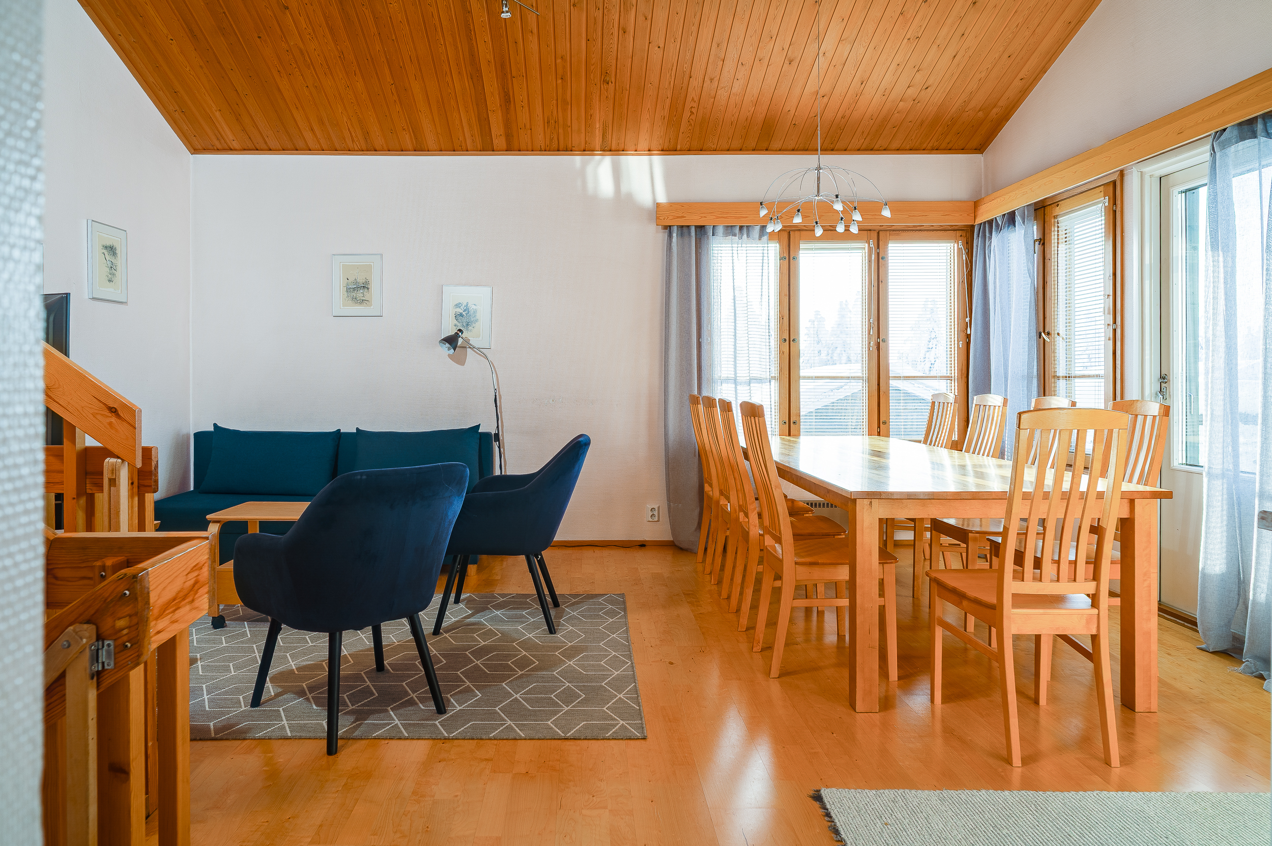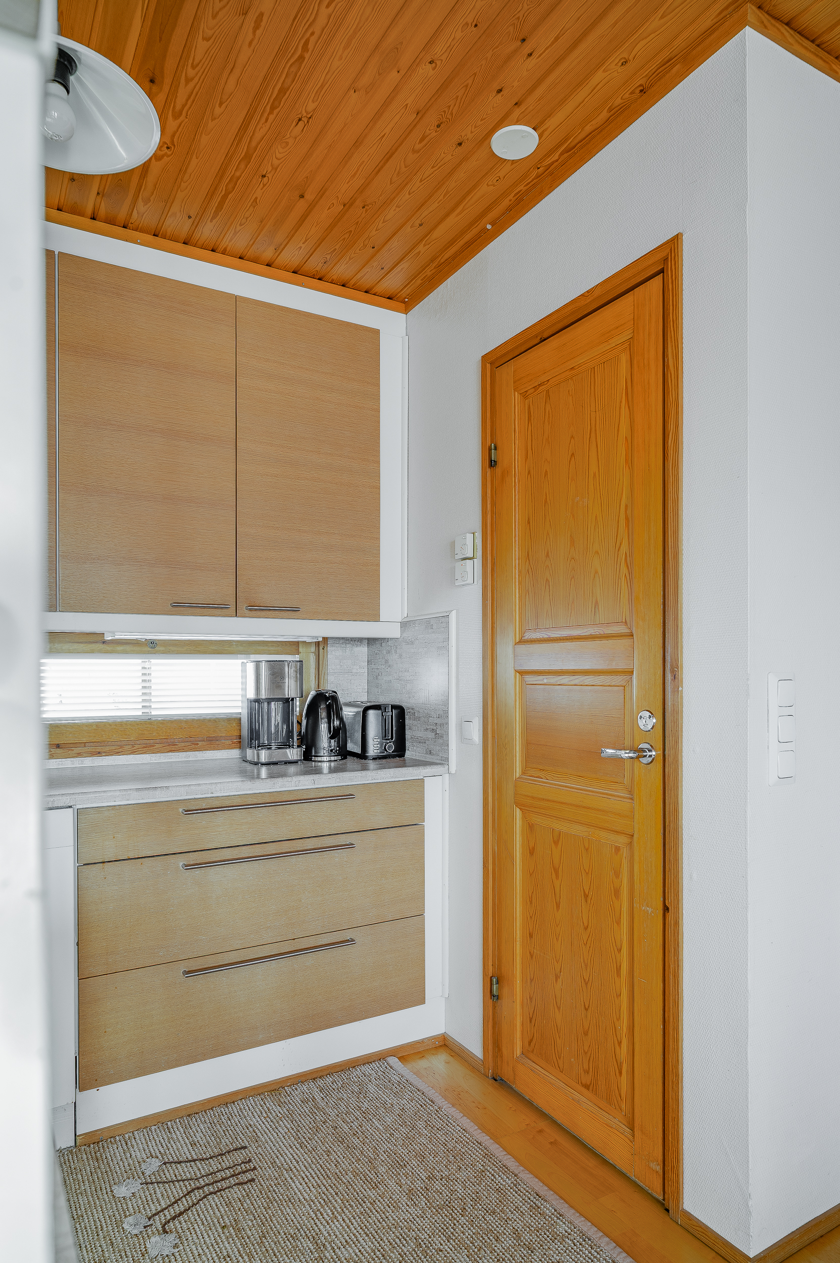 Varusteet: kaapistot, sälekaihtimet/rullaverhot, verhotangot, kiinteät valaisimet
