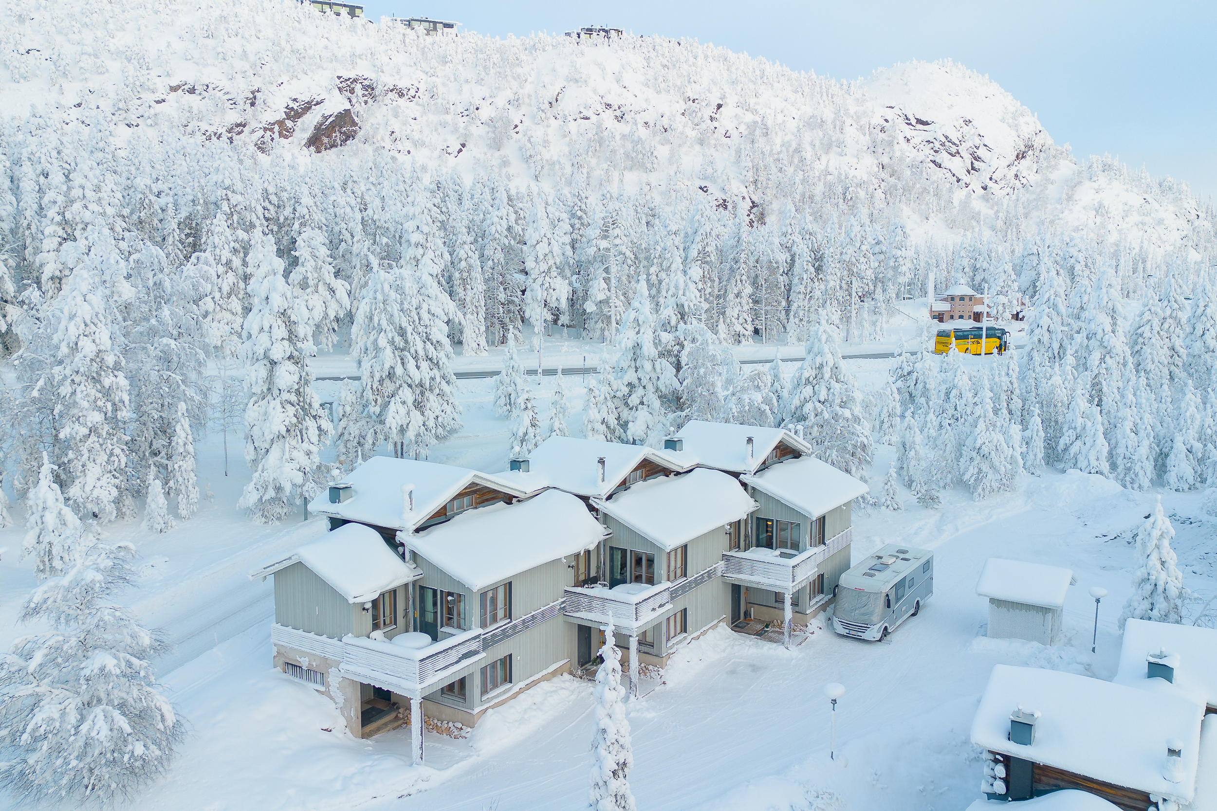 Ski Bus-reitti kulkee vierestä, matkaa Rukan ydinalueelle n. 1 km, lähin ravintola 0,50 km. Hiihtoladut kulkevat miltei pihan poikki.