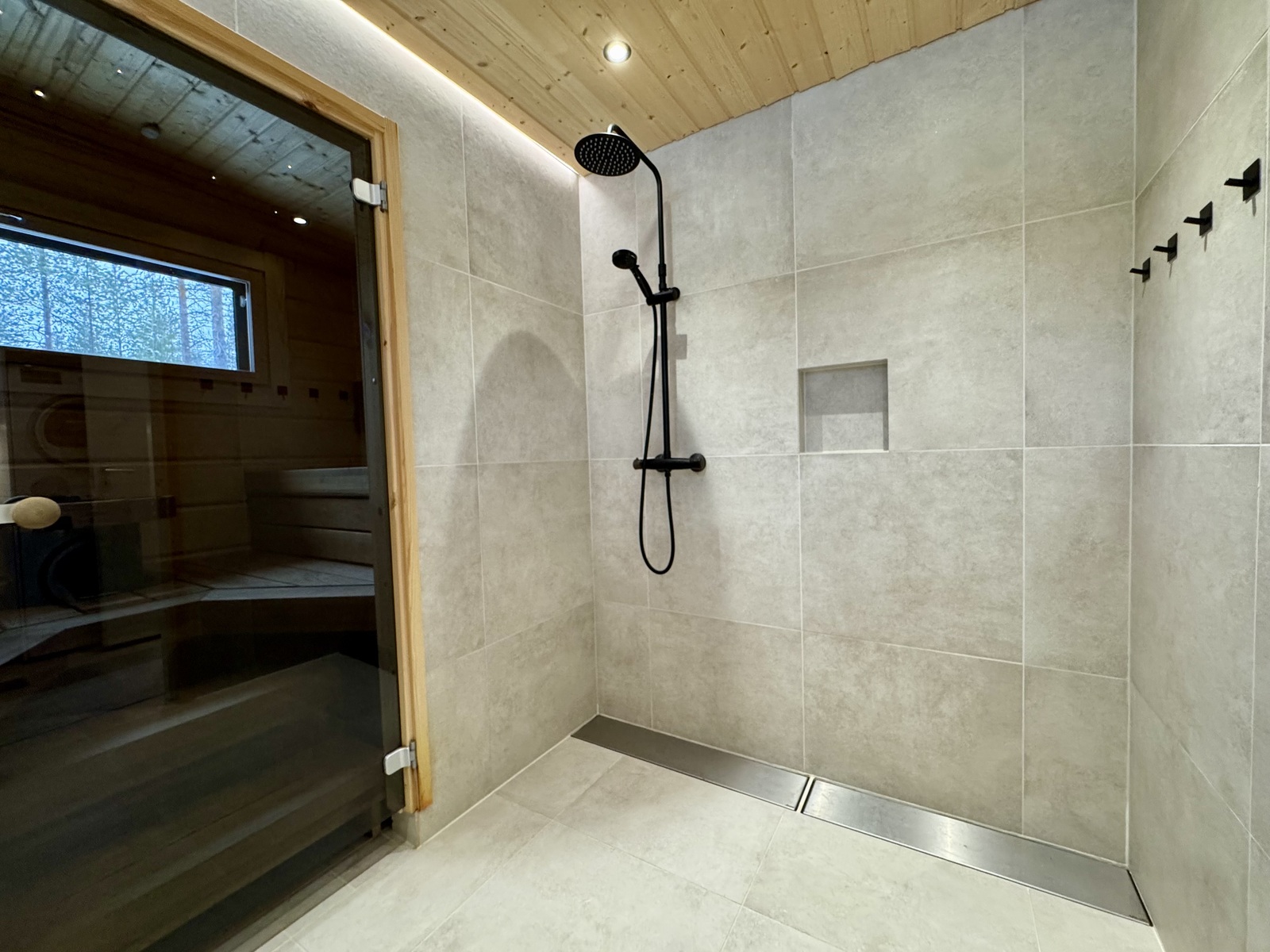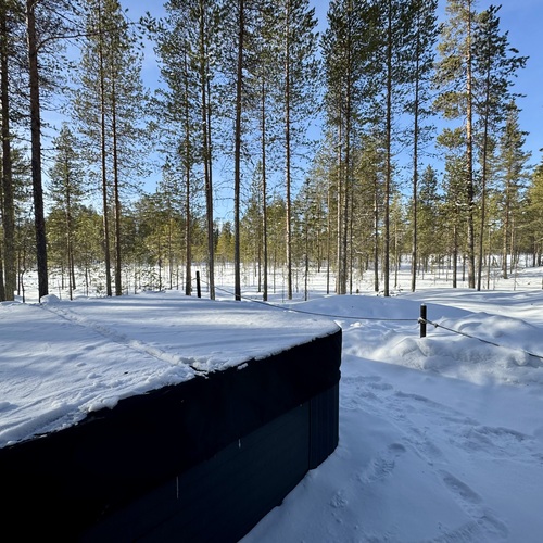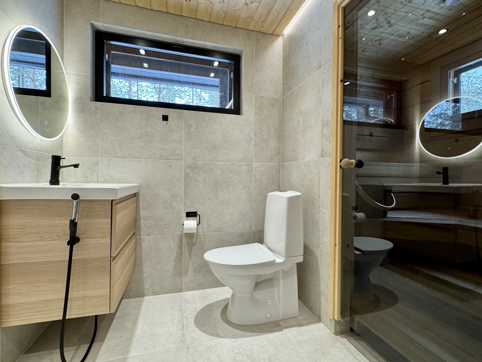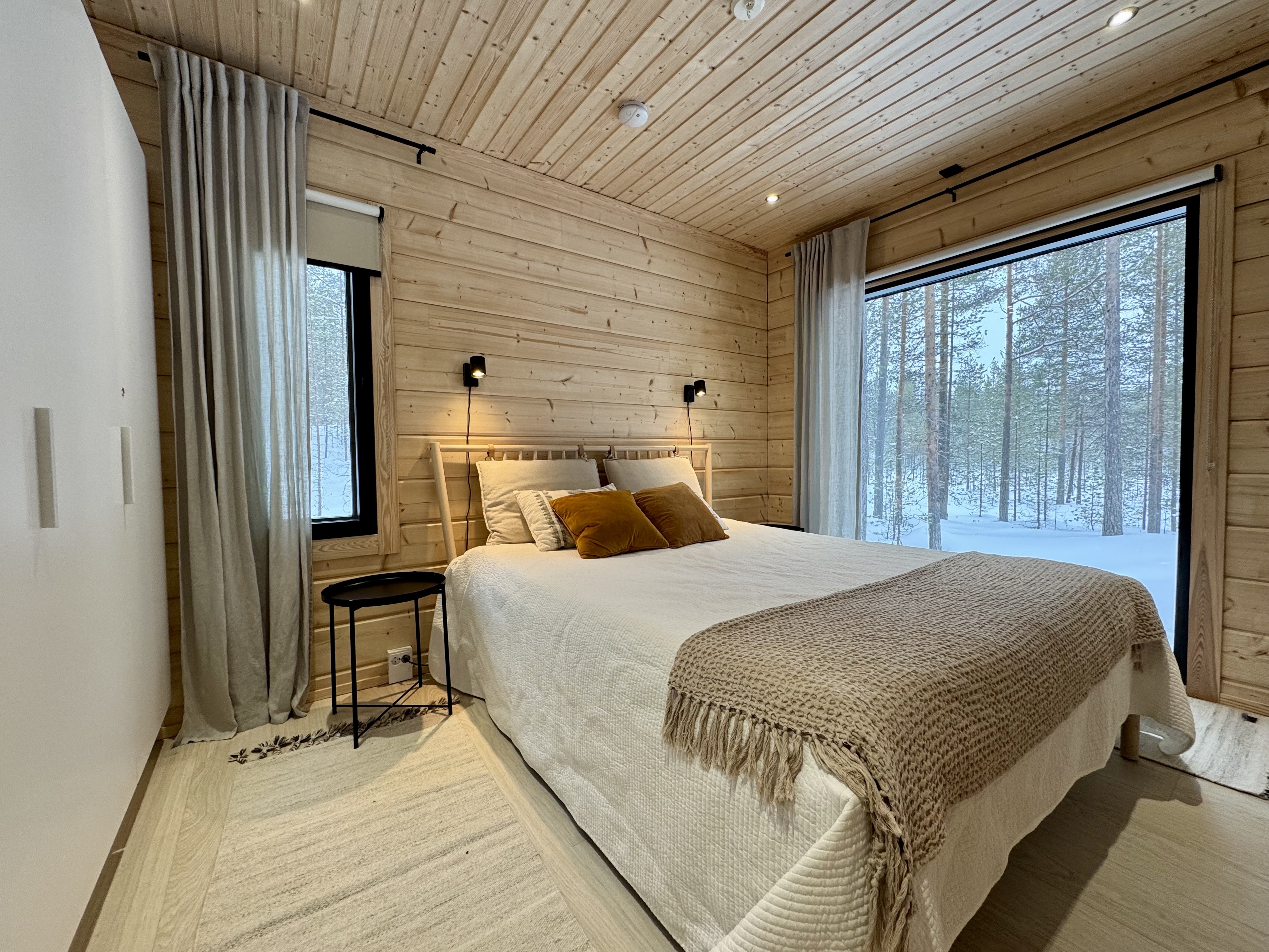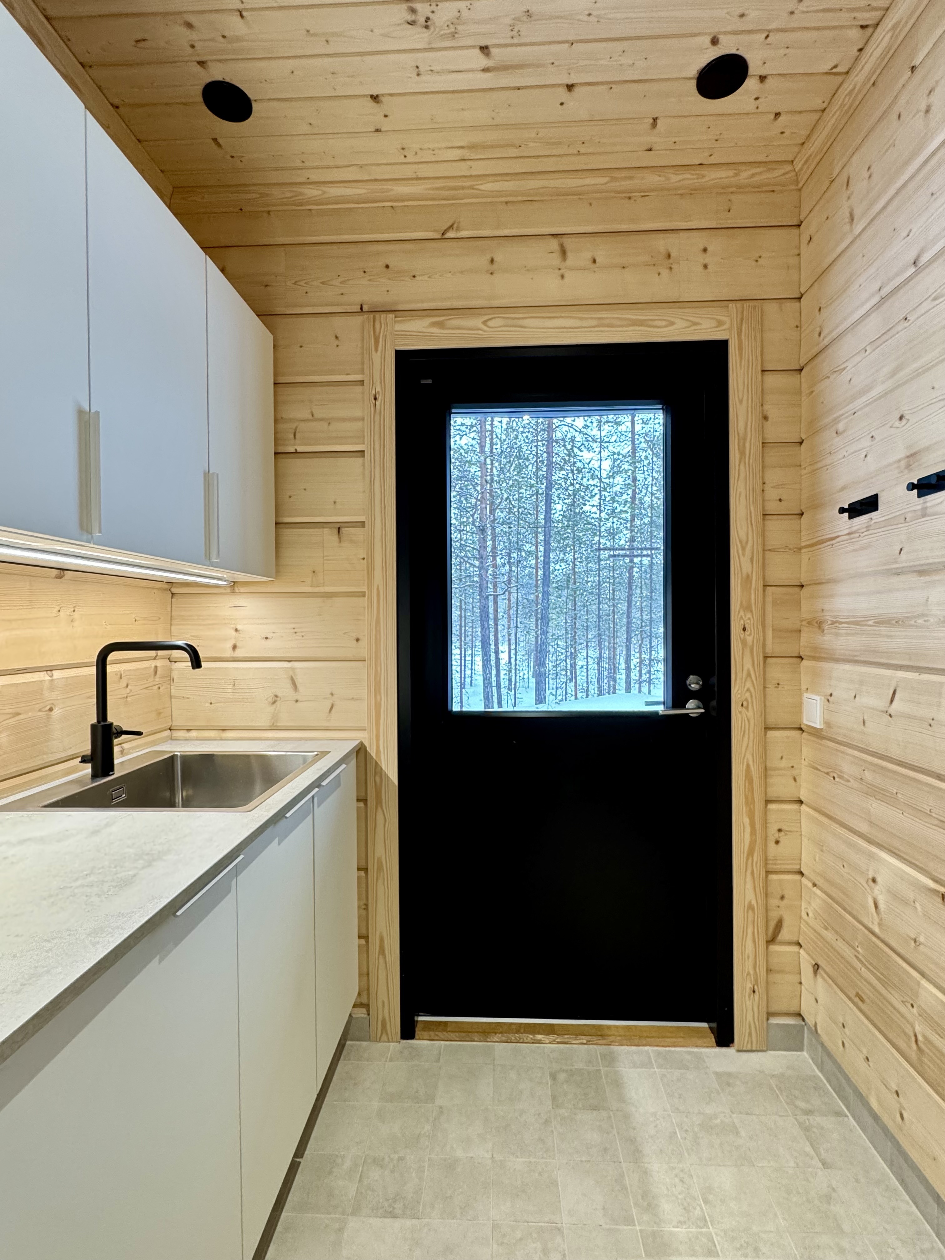 SähkökiuasLumi-sauna, diplomaattilauteet lämpöhaapaa, Harvian Cilindro- pilarikiuas, ikkuna luontoon