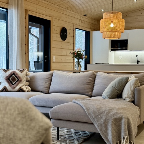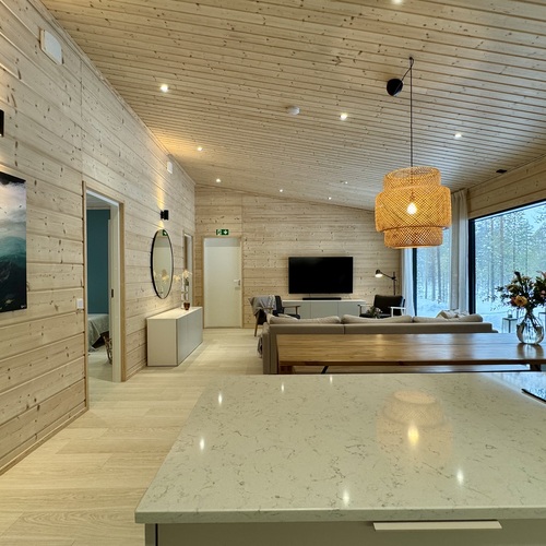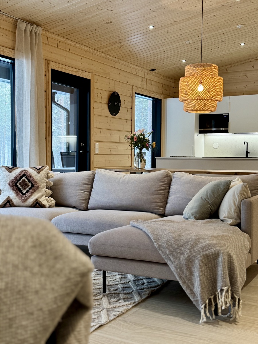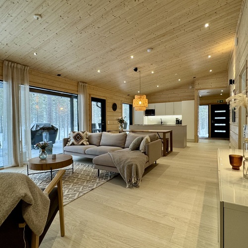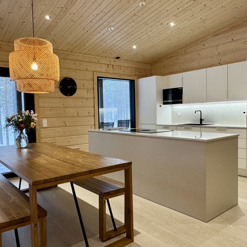 Nyt on mahdollisuus ostaa omaksi unelmien kohde, v. 2022 valmistunut hirsinen (Mammuttihirsi), moderni, hyvin varusteltu huvila Rukan pohjoispuolelta kauniin ja kirkasvetisen Kantojärven rannalta.