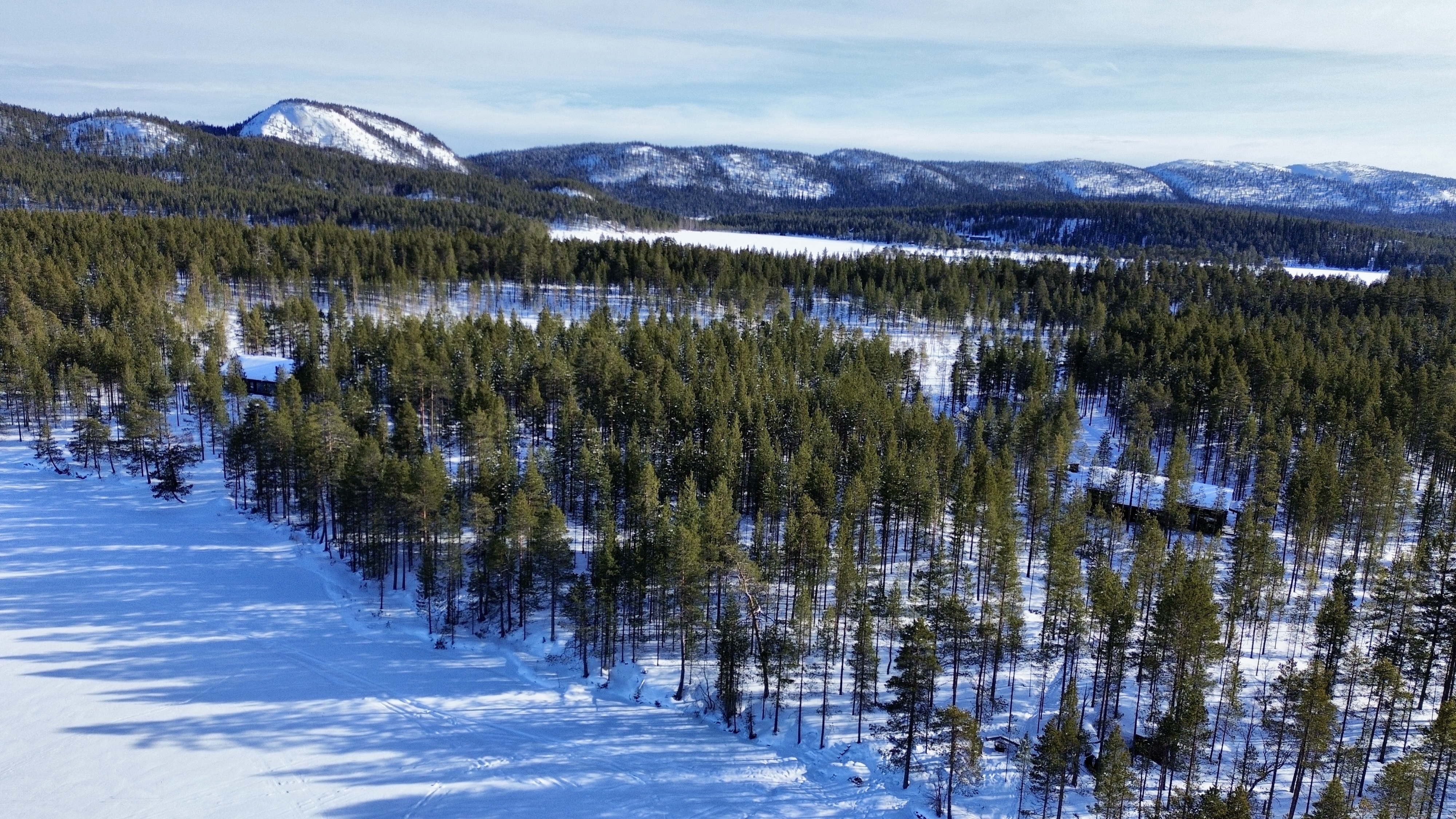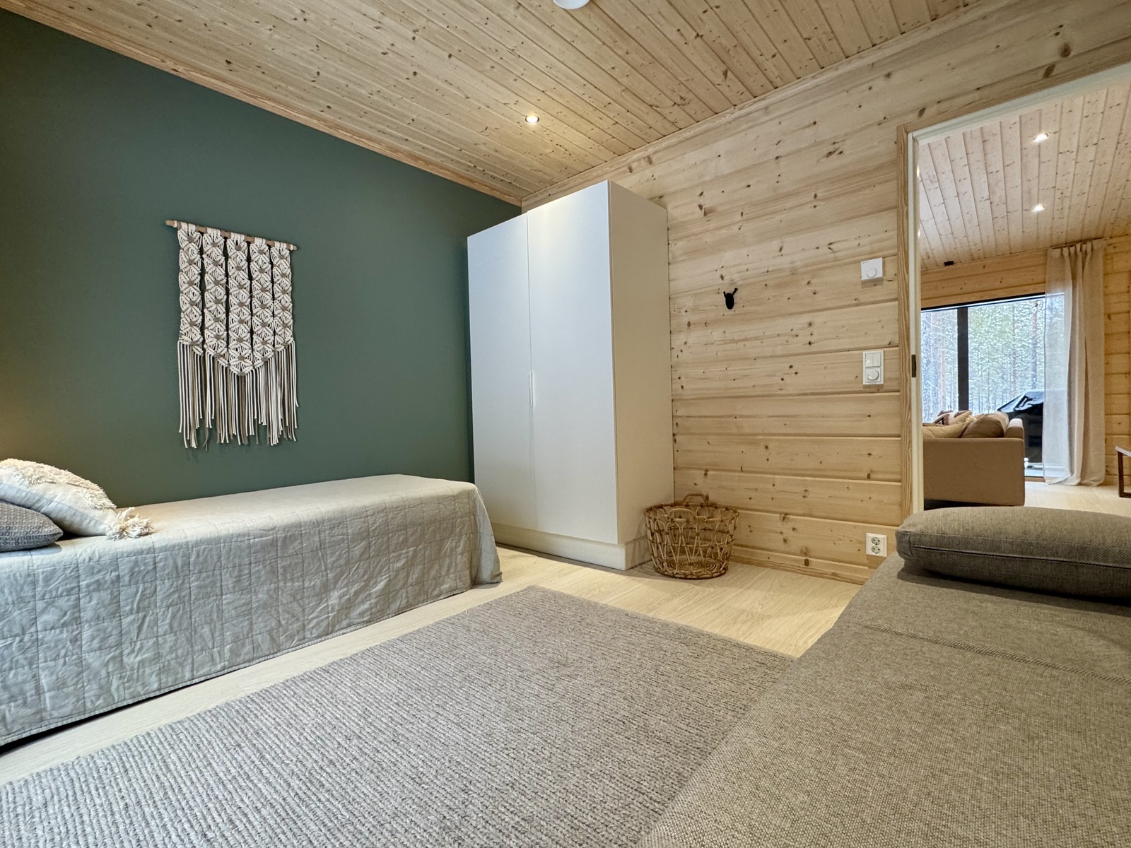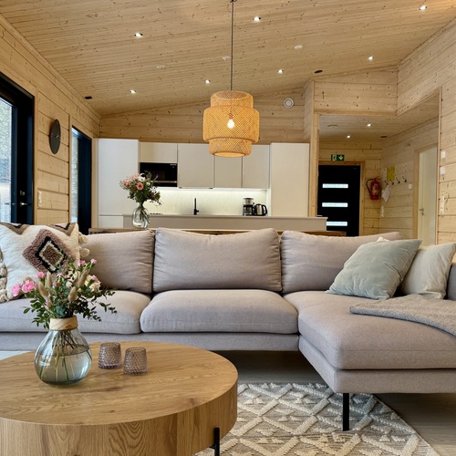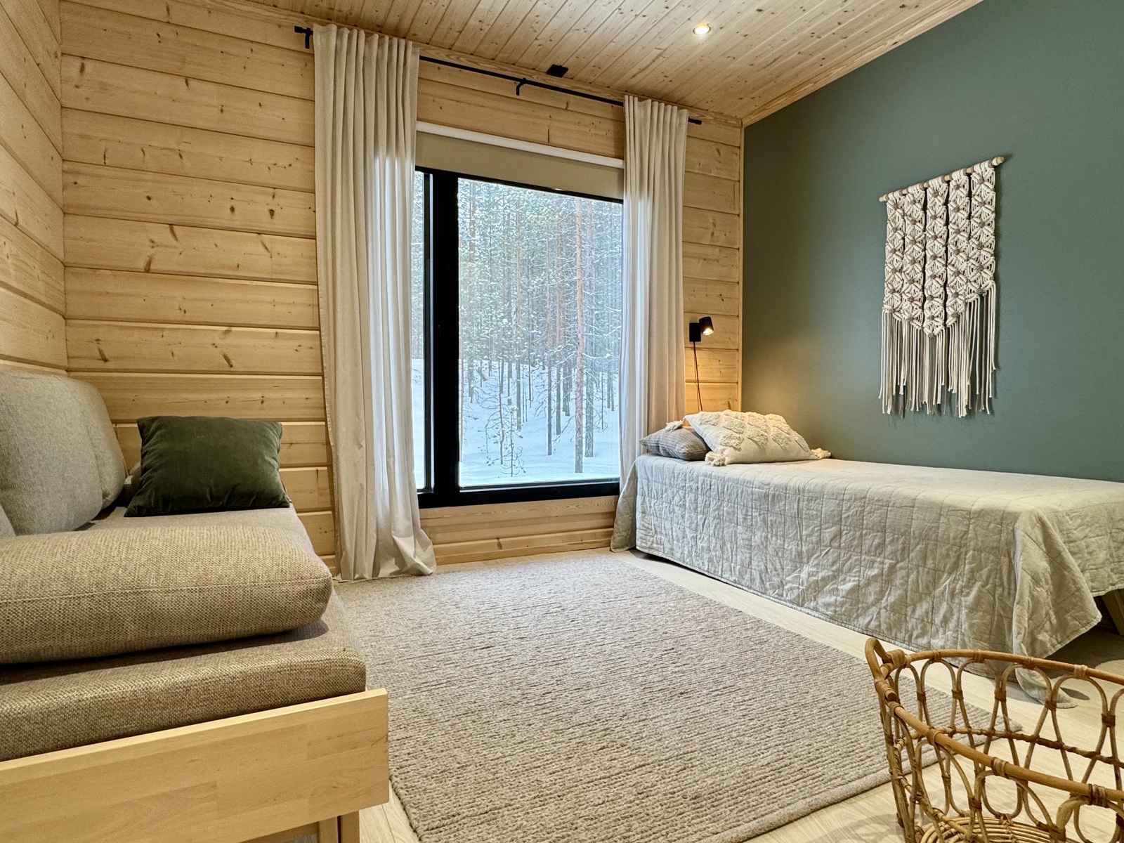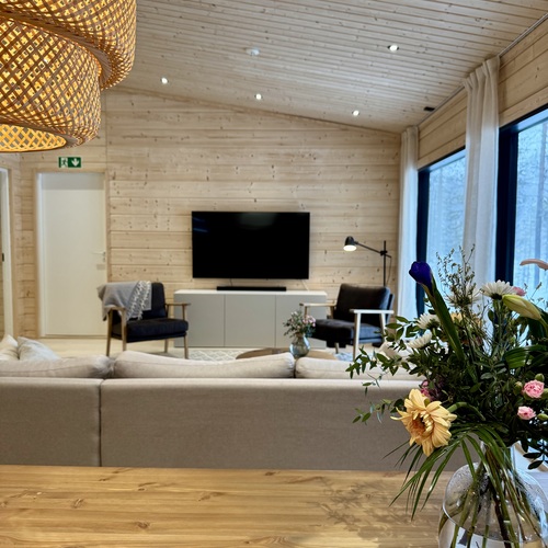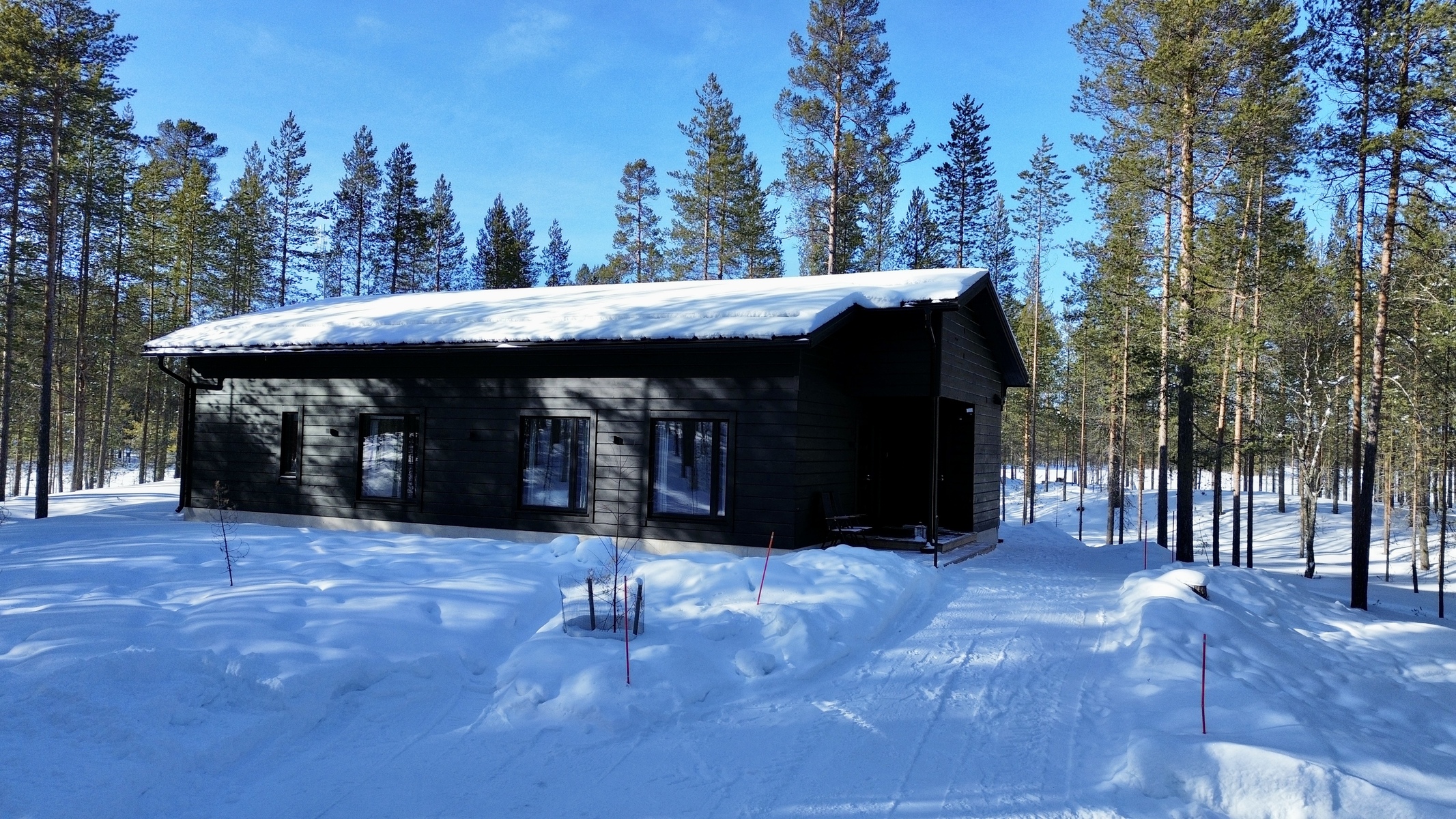 Suurista, lattiaan asti ulottuvista ikkunoista tulvii sisälle eri vuodenaikojen mukaan vaihtuva maisema ja luonnon valo. Kesäisin välkehtii järvi, talvella lumivalkeat hanget. Hillasuotkin ovat aivan lähettyvillä.