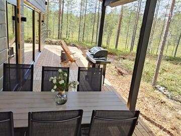 Suurilla terasseilla mahtuu kesäiltoja viettämään isompikin porukka grillaillen ja maisemista nauttien.