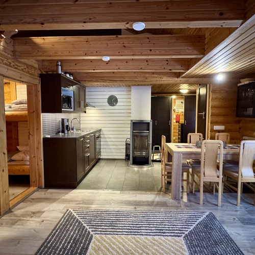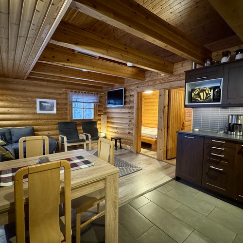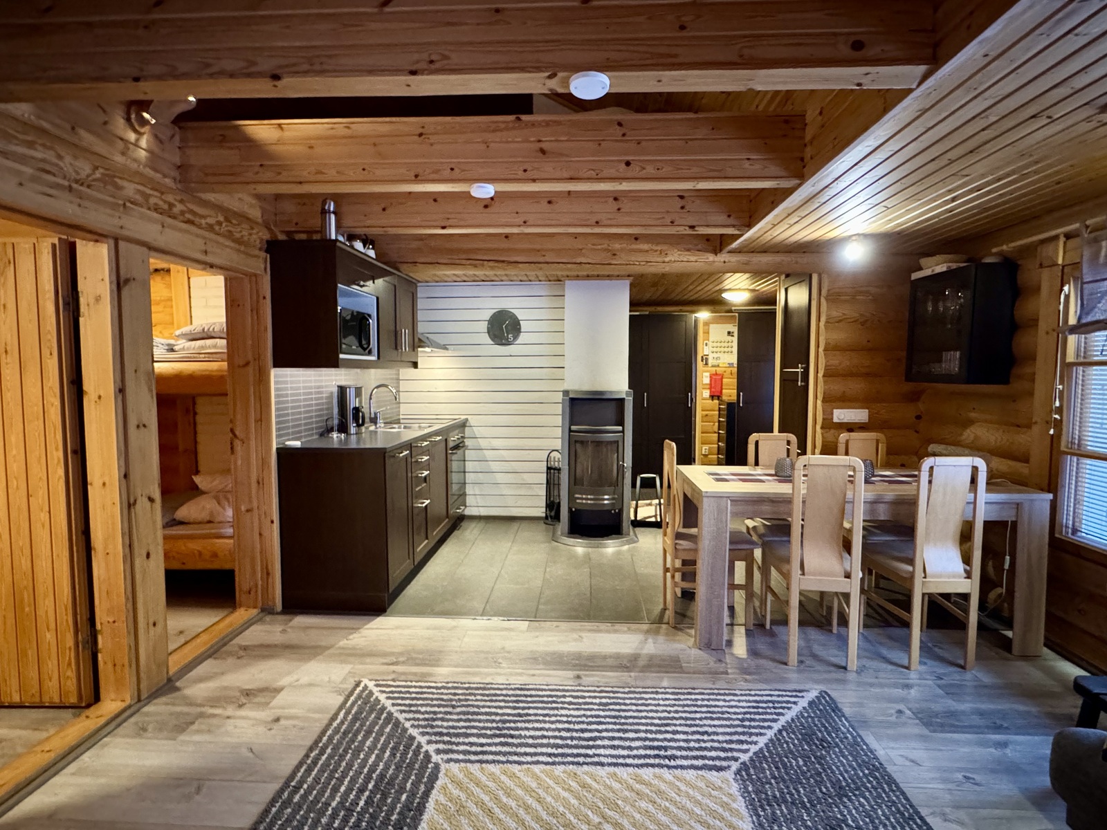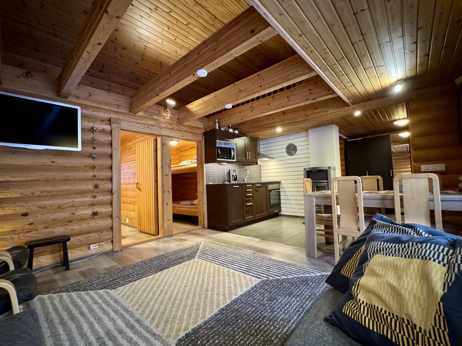 Alakerrassa tupakeittiö, kaksi makuuhuonetta, kylpyhuone ja sauna. Parvella lisää makuupaikkoja. mahdollistaen majoittumisen isommallekin porukalle.