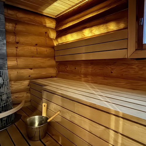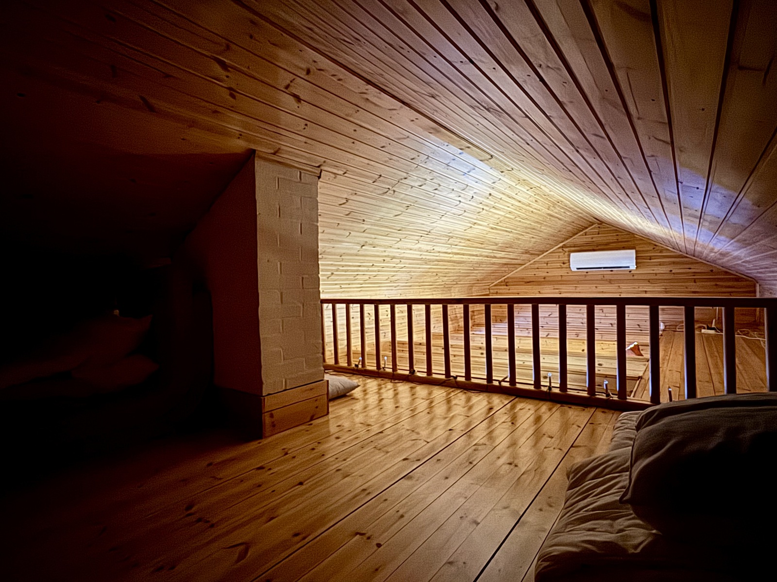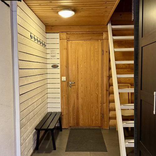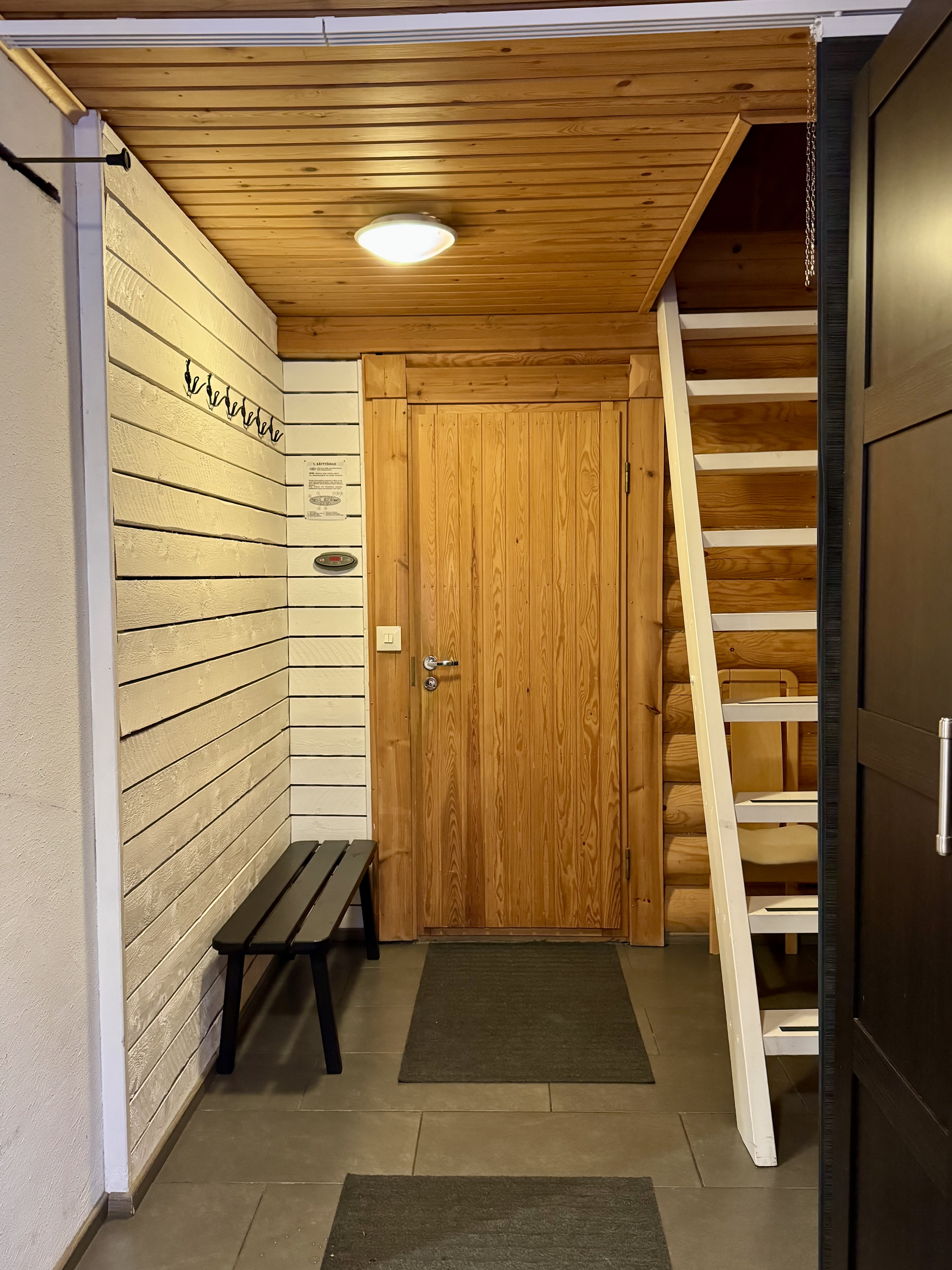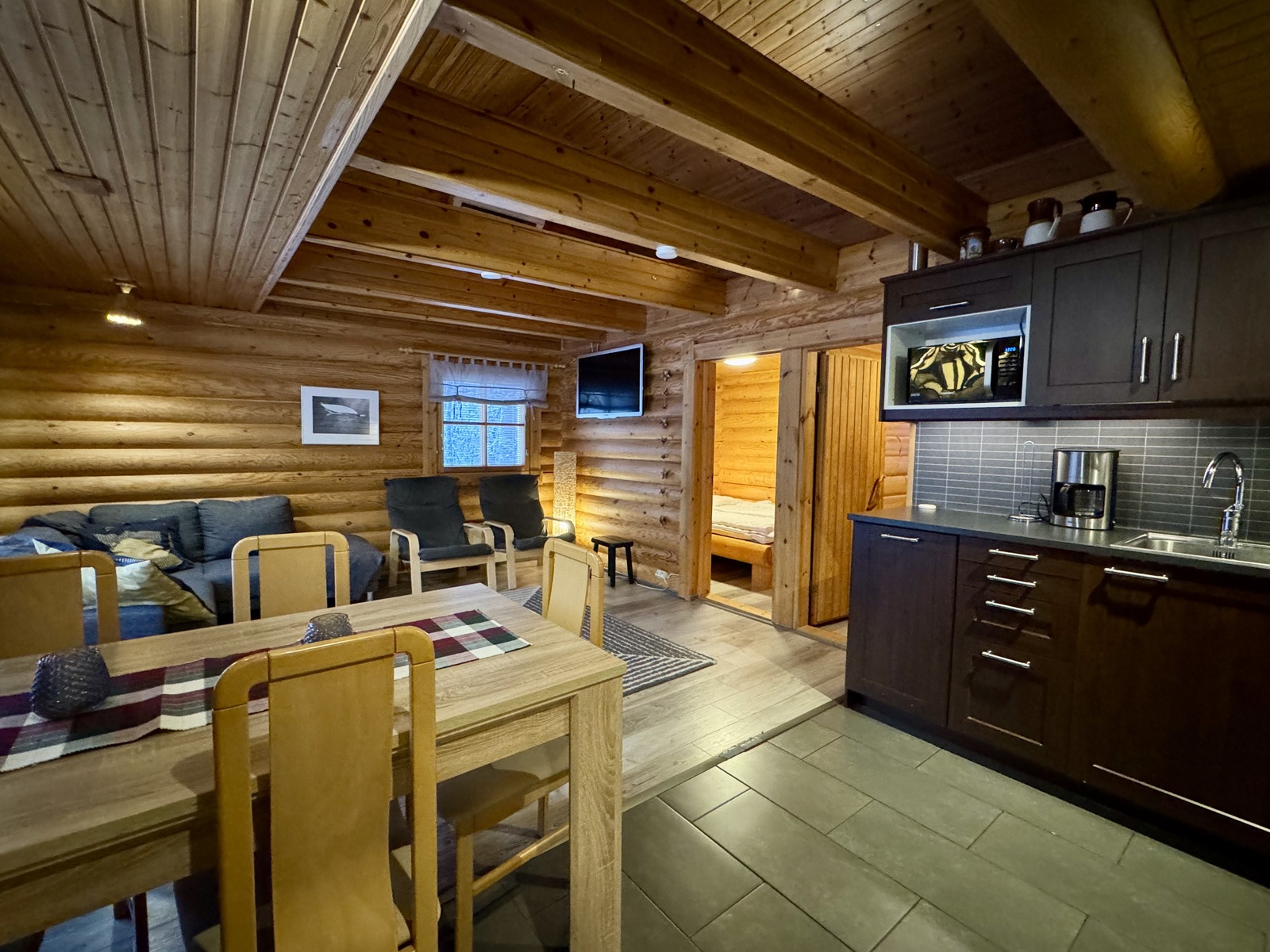 Alakerrassa tupakeittiö, kaksi makuuhuonetta, kylpyhuone ja sauna. Parvella lisää makuupaikkoja. mahdollistaen majoittumisen isommallekin porukalle.