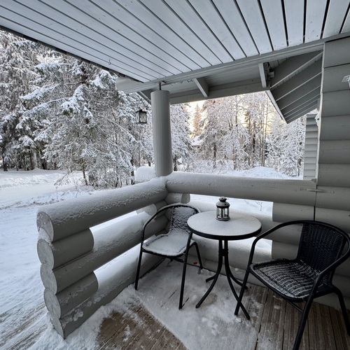 Rauhallisella ja aurinkoisella tontilla sijaitseva viihtyisä pyöröhirsimökki ympärivuotiseen käyttöön.
