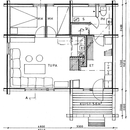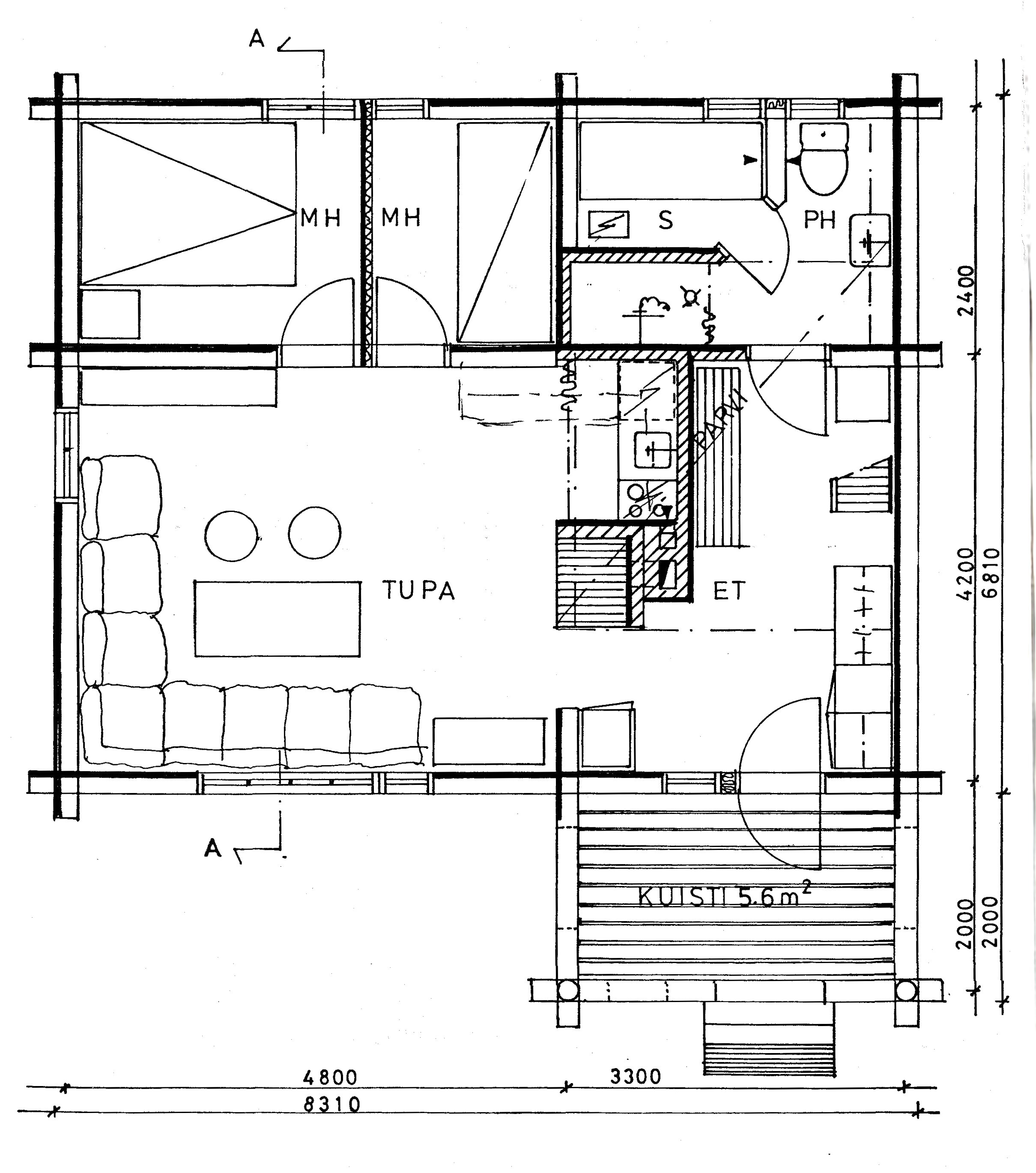 tupakeittiö, 2mh, ph, s, wc, et + parvi