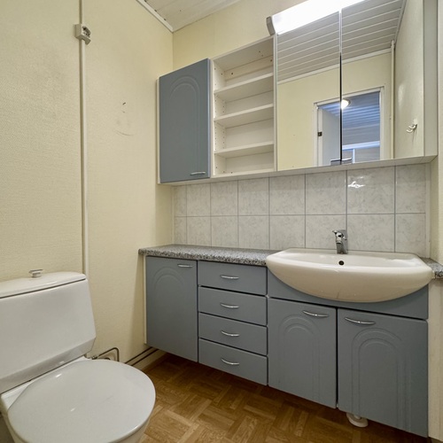 Varusteet: pesukoneliitäntä, kuivauskaappi, wc-istuin, suihku, kiinteät valaisimet, kylpyhuonekaapisto