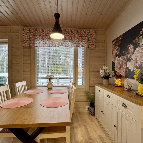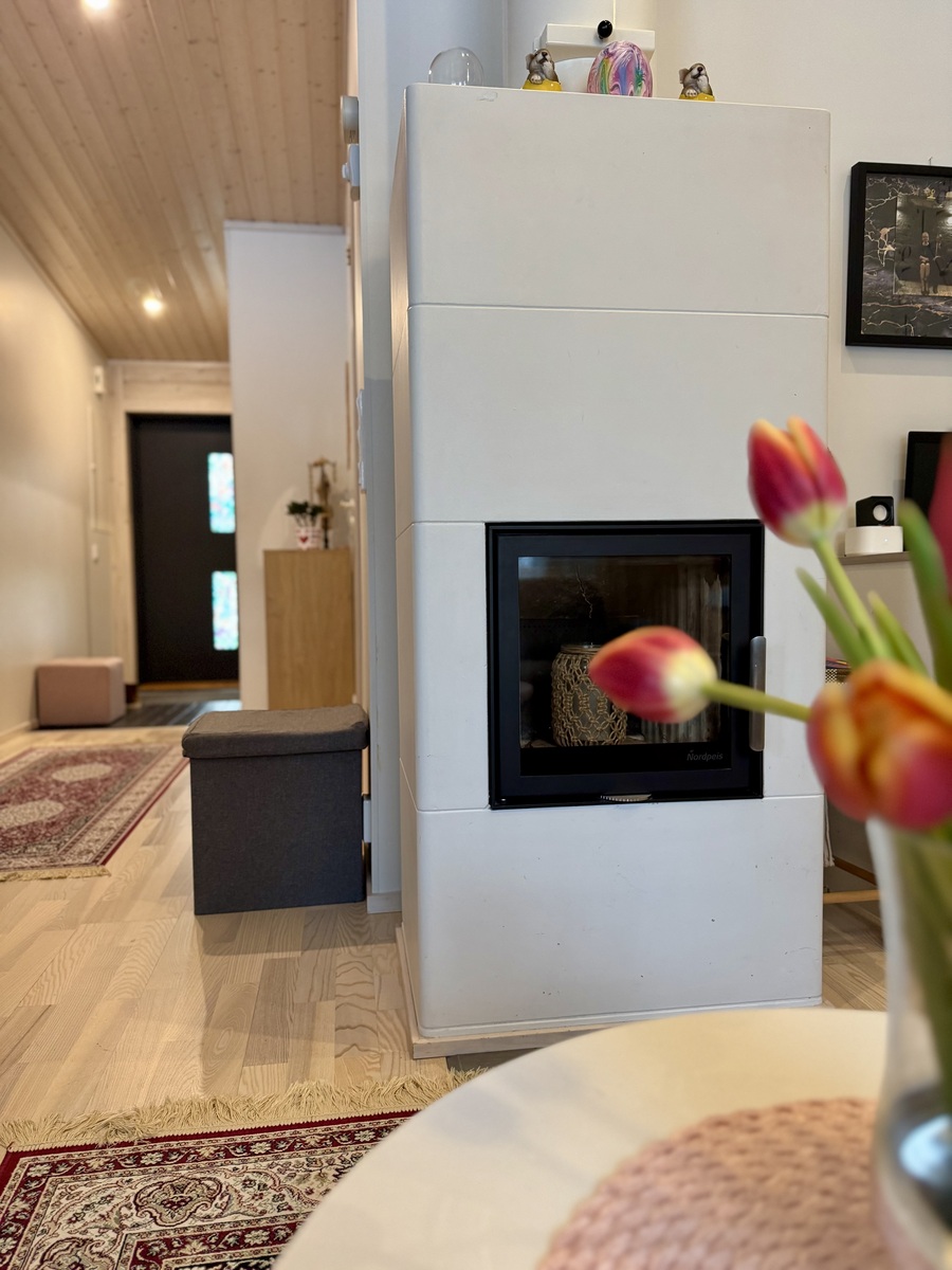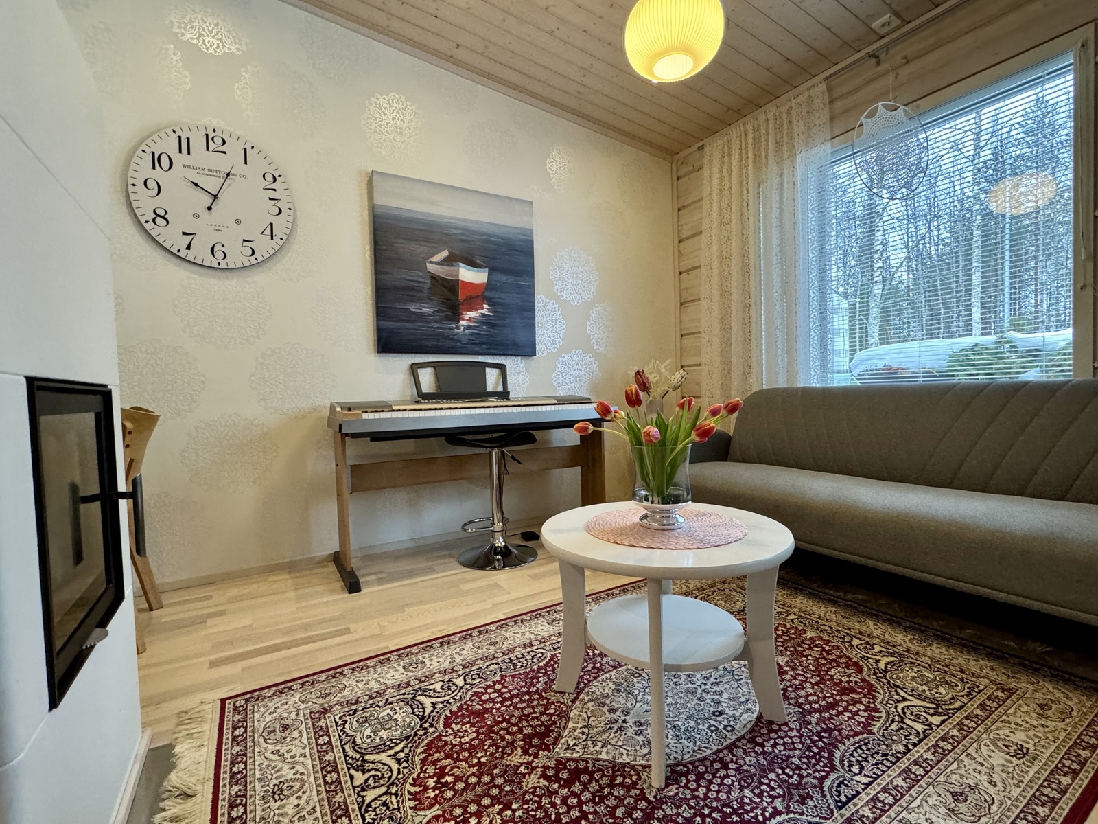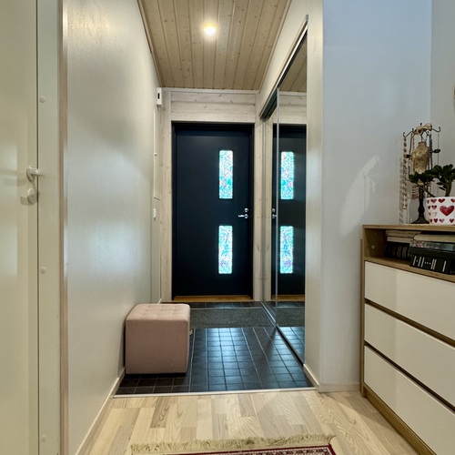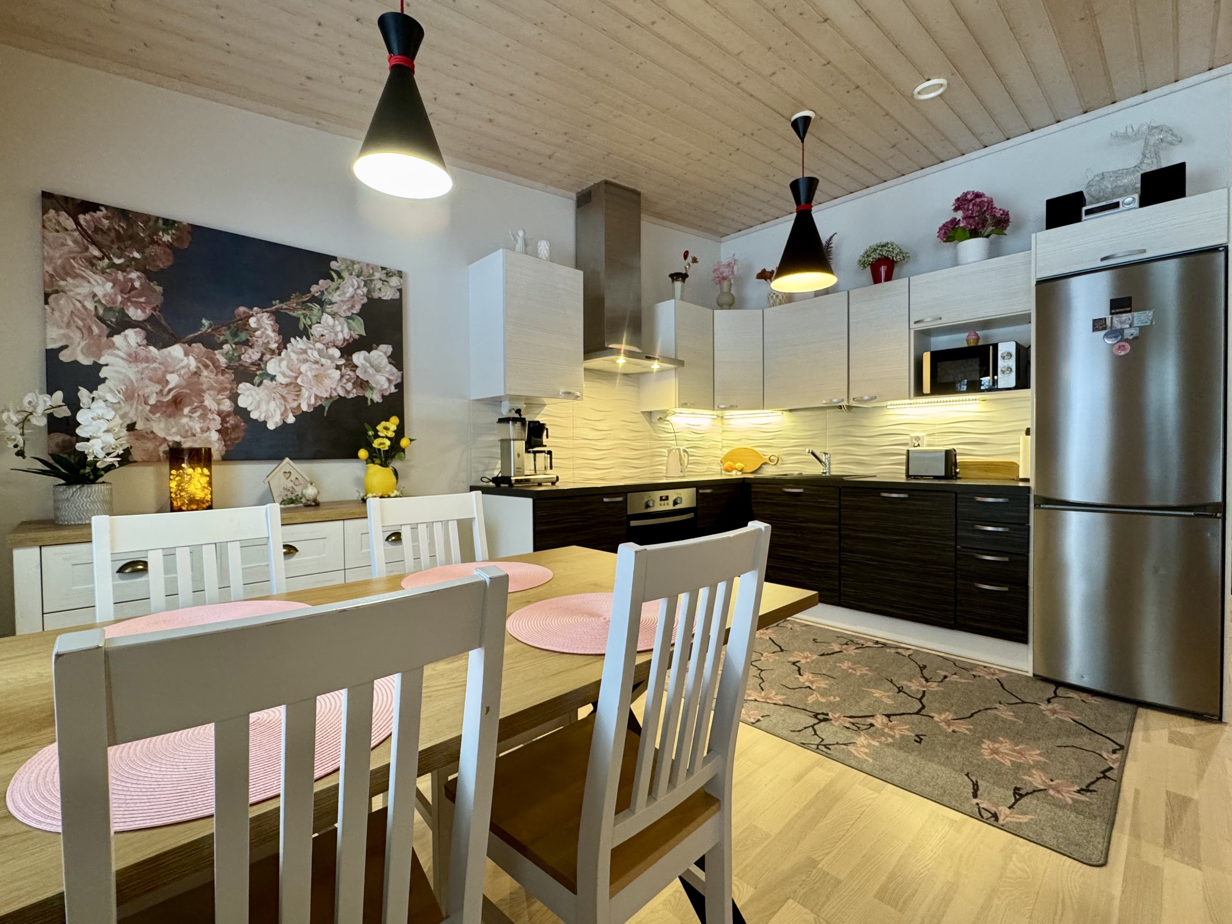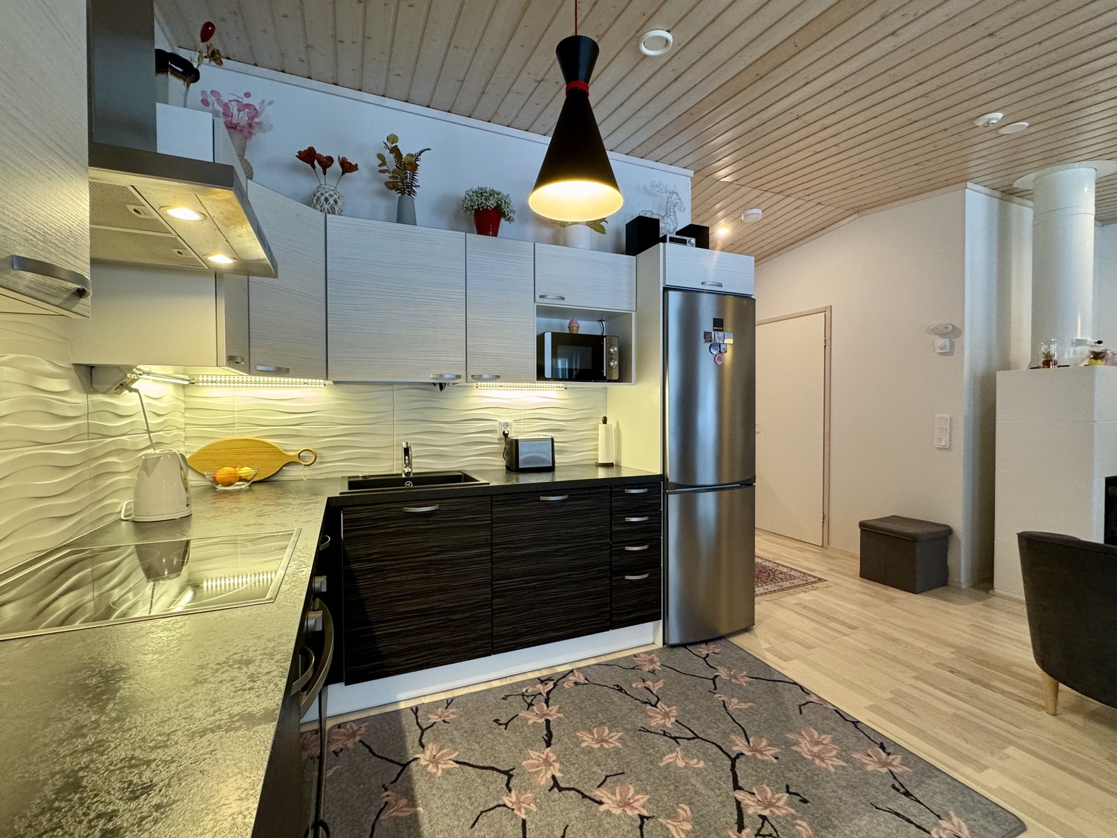 v. 2014 valmistunut rivitalon 55 m² päätykaksio. Olohuone-keittiö, jossa tunnelmantuojana kaunis takka. Makuuhuone jossa hyvin kaappitilaa sekä oma sauna ja tilava kylpyhuone.