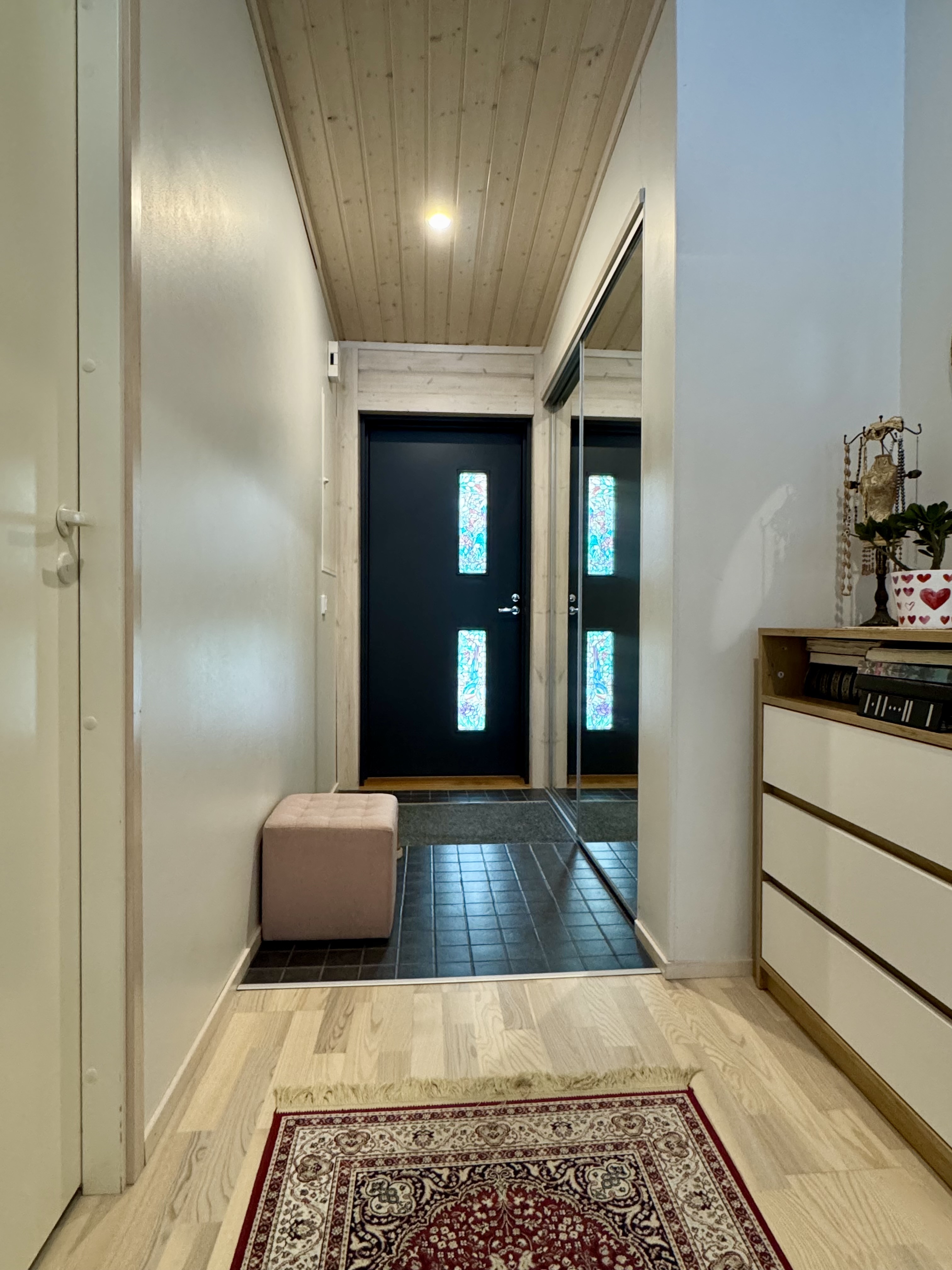 eteisessä laattalattia ja tilava liukuovipeilikaapisto