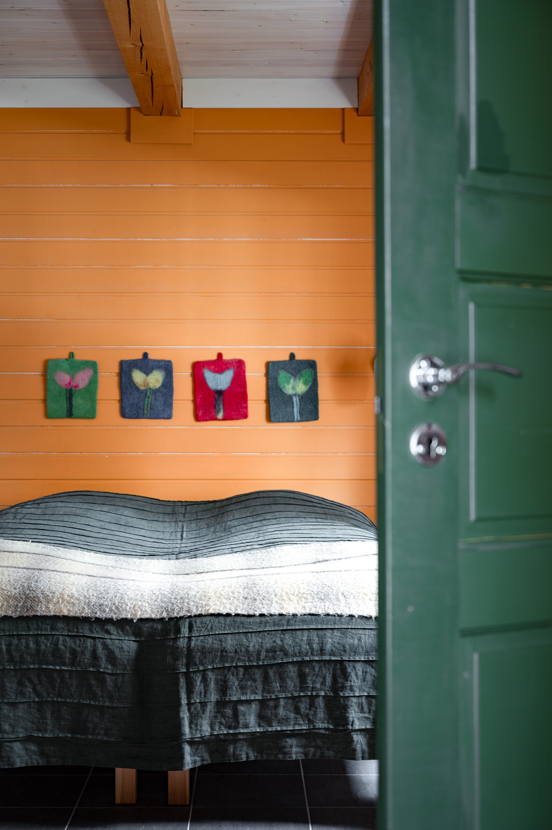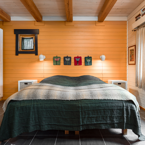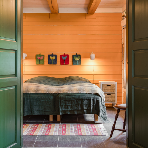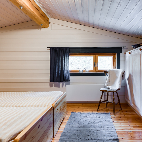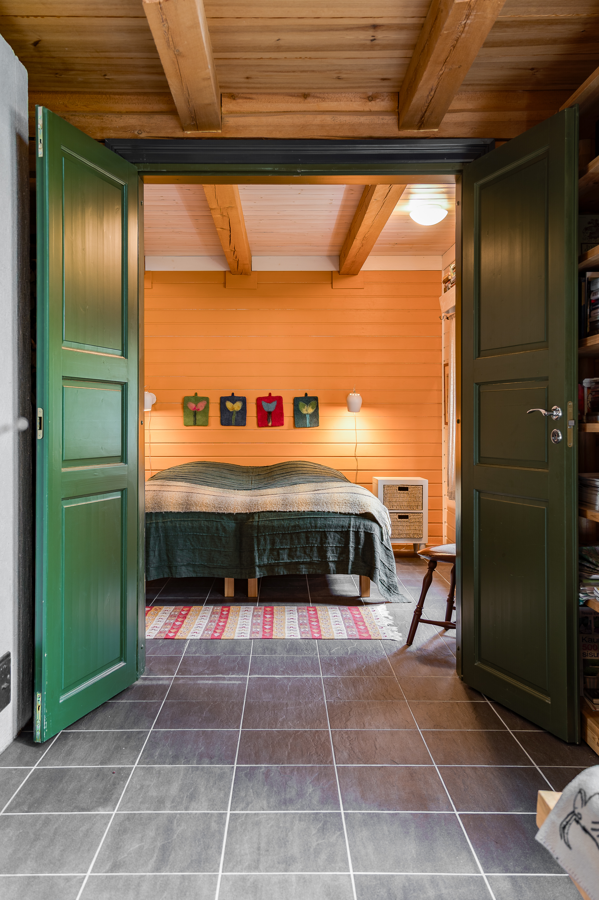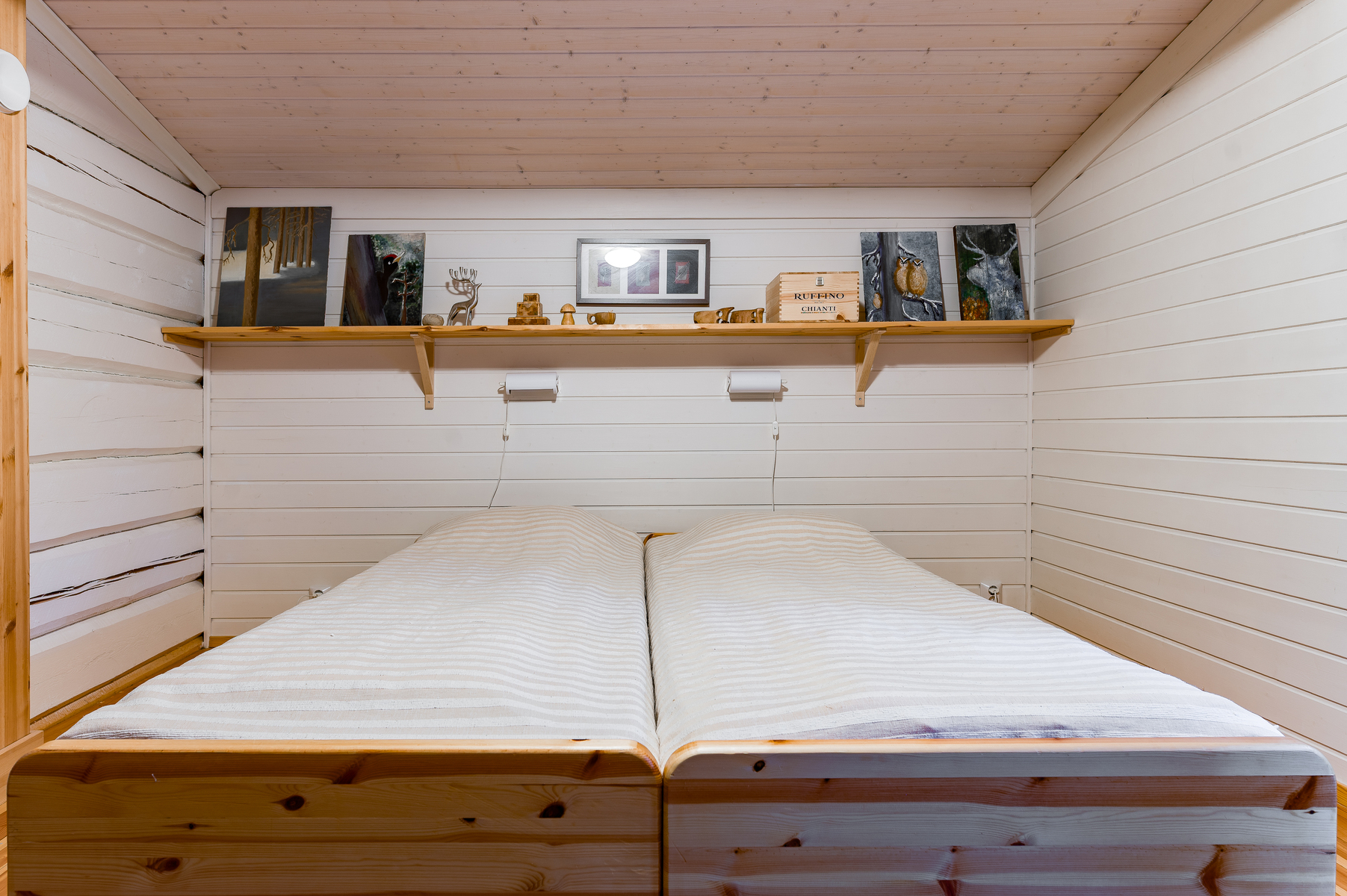 Toinen makuuhuoneista parvihuone, jonka pinta-alaa ei ole otettu huomioon neliöissä. Makuuhuoneissa kaapistot.
