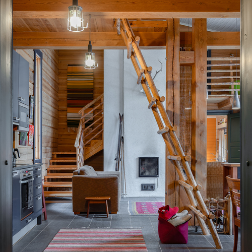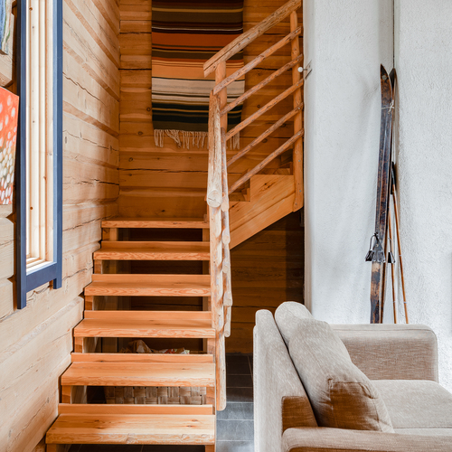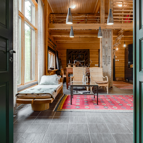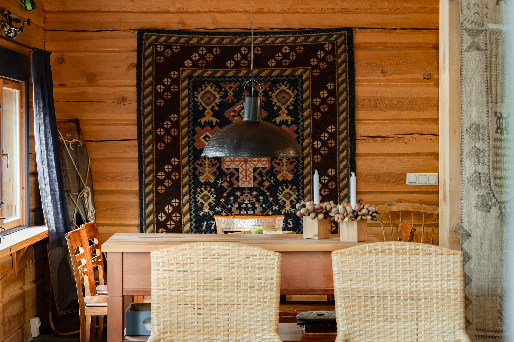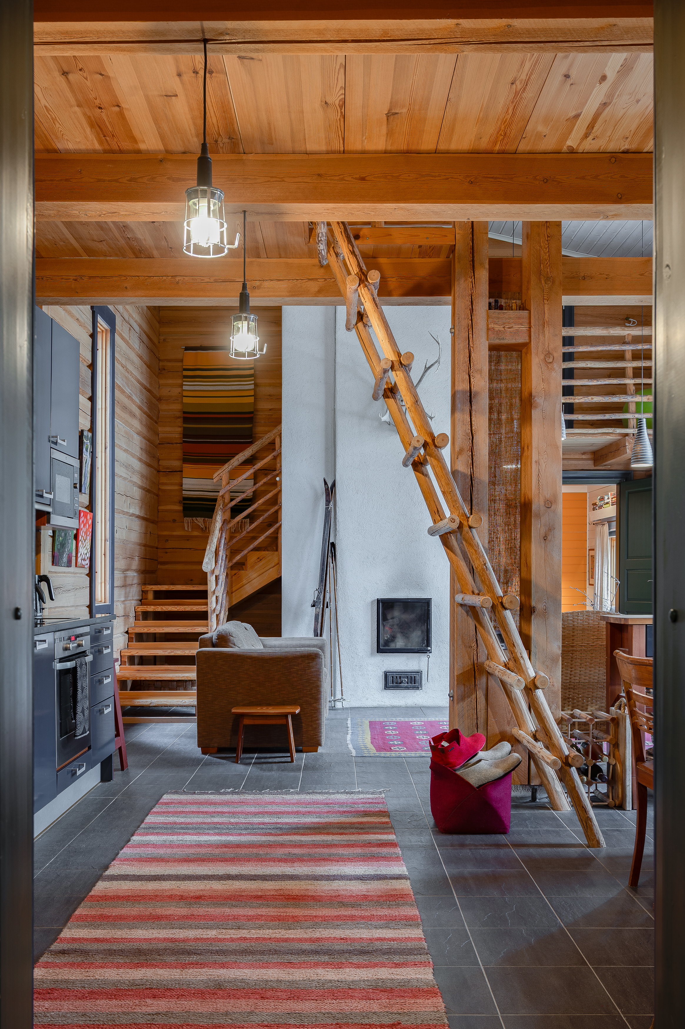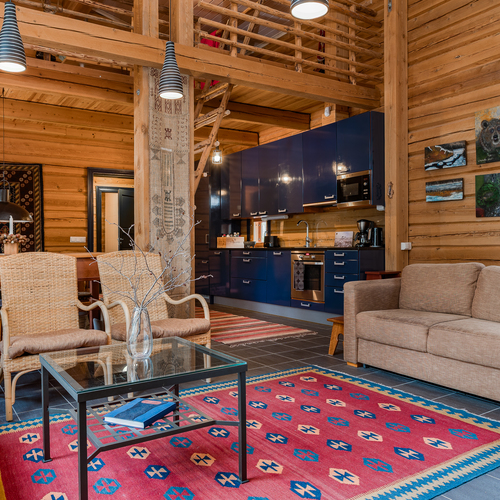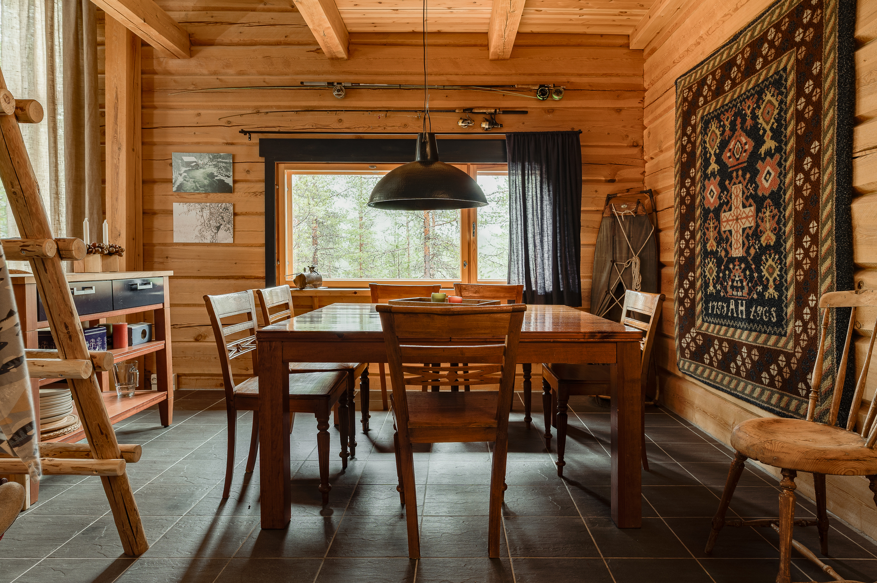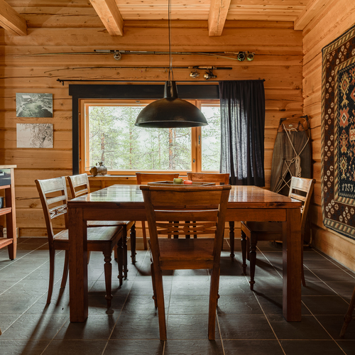 Lämminhenkinen sisustus, suurten ikkunoiden tuoma valoisuus ja avarat tilaratkaisut luovat harmonisen ja tunnelmallisen kokonaisuuden, joka hivelee esteettistä silmää.