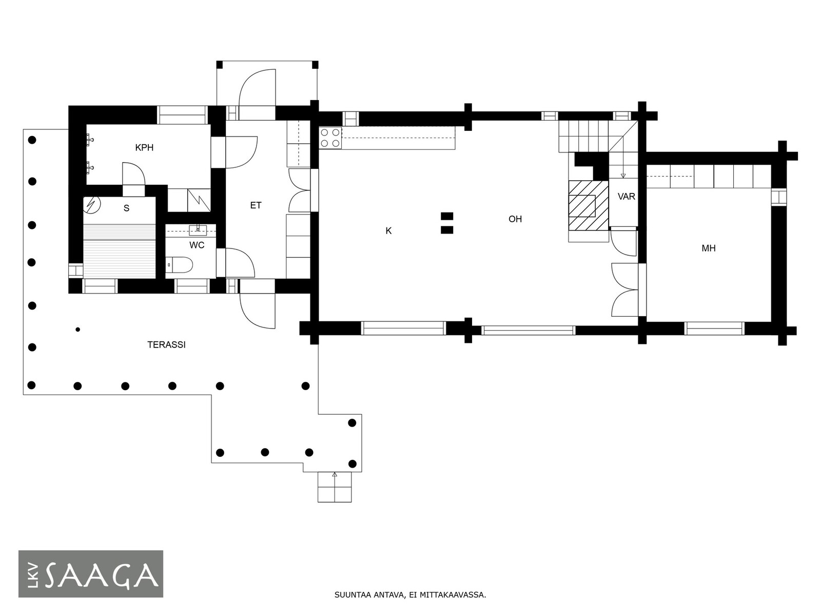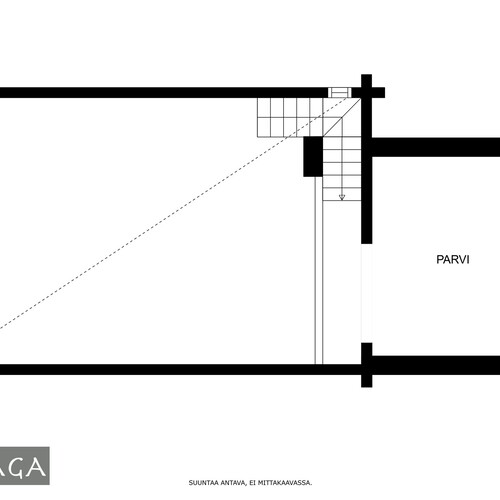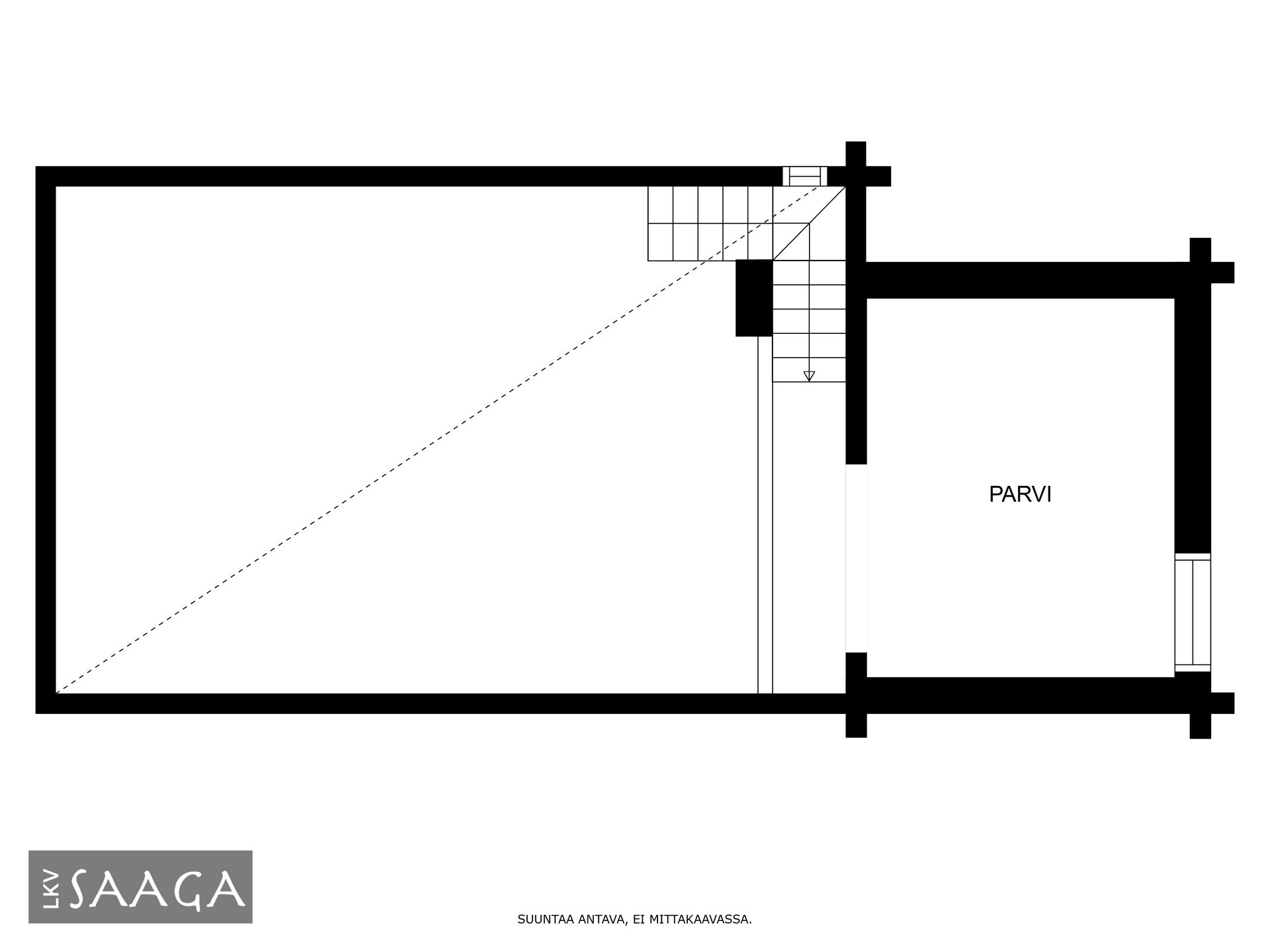 Tupa, k, mh, eteinen, ph, s, wc ja parvihuone sekä parvi