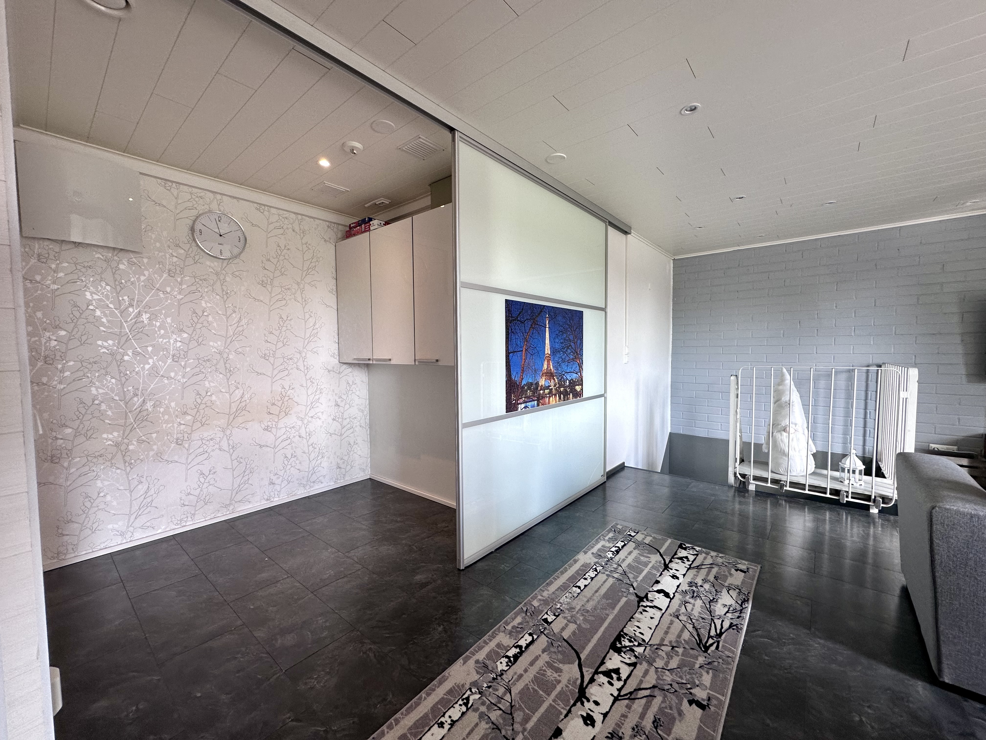 Katutasossa avara olohuone, makuualkovi ja keittiö. Alakerrassa erillinen wc, makuuhuone, kodinhoitohuone, kylpyhuone ja sauna.