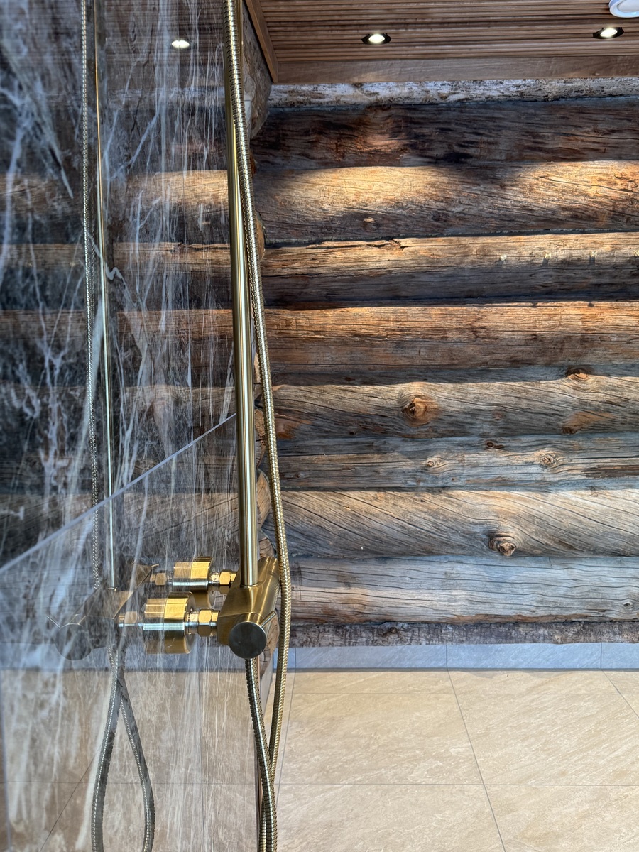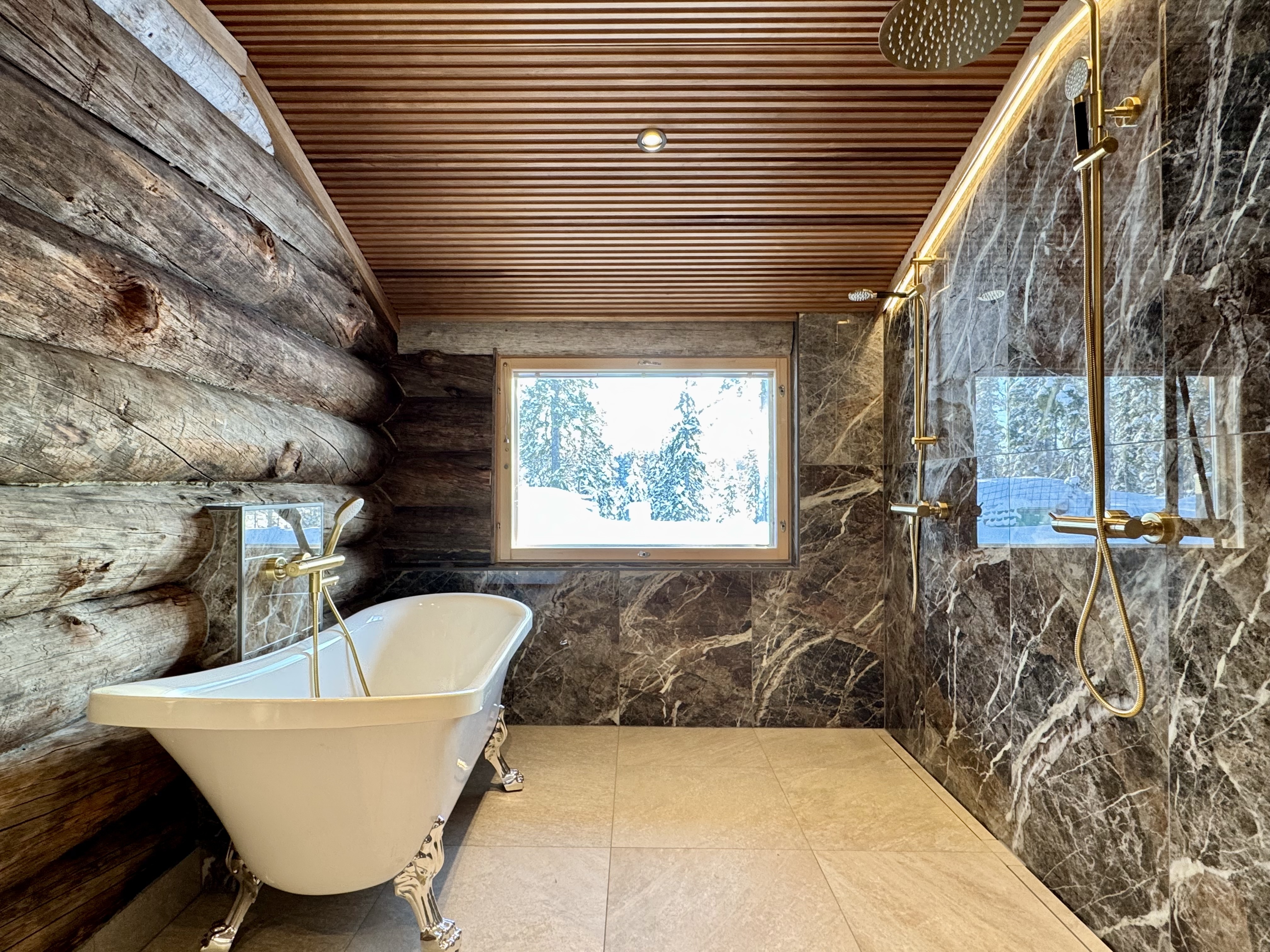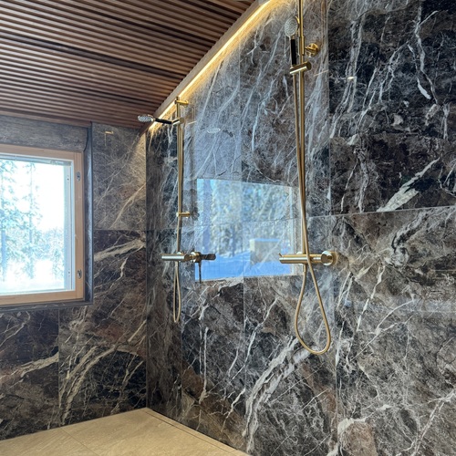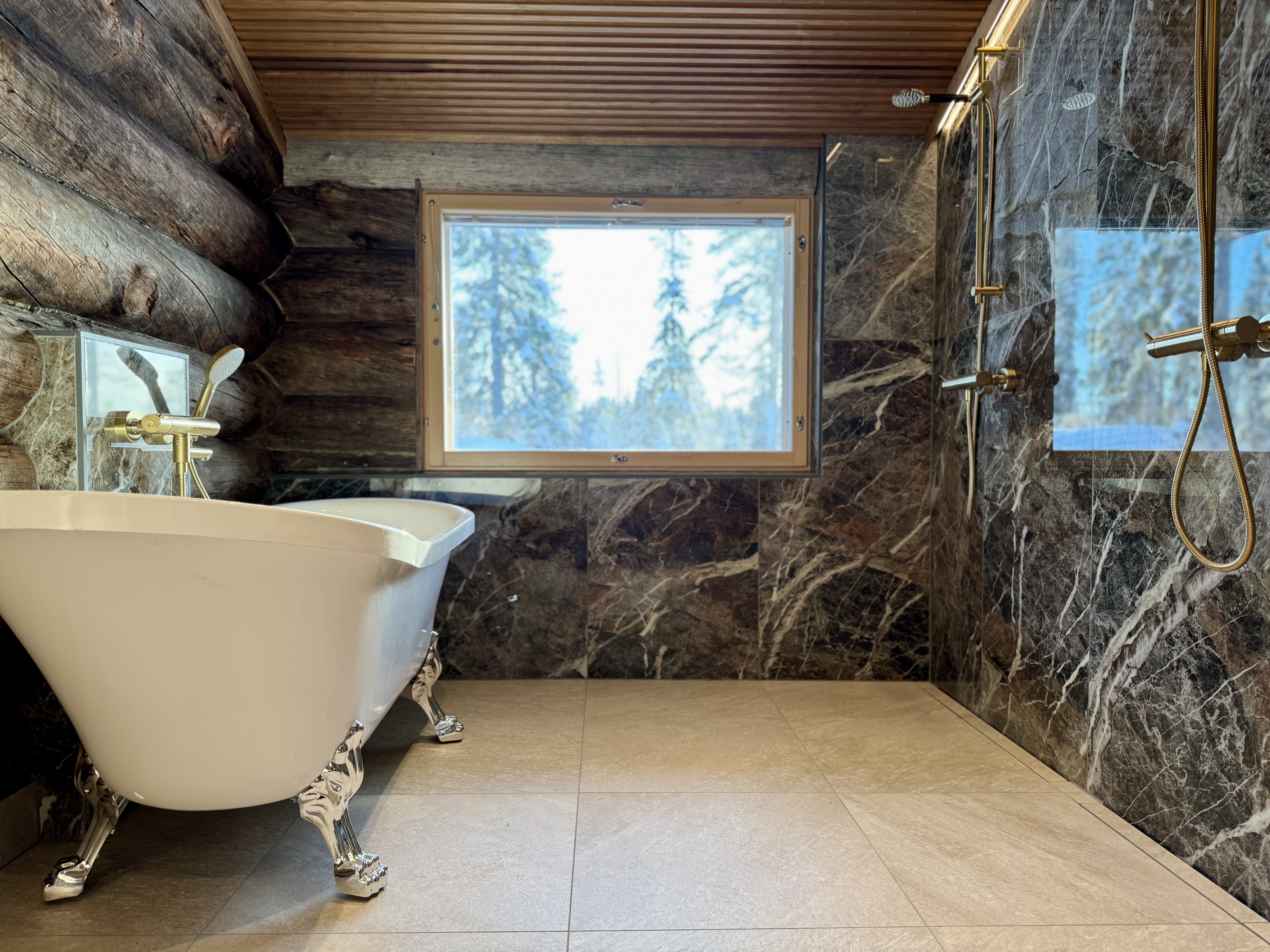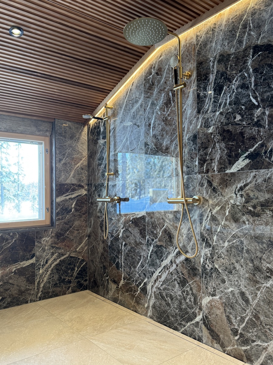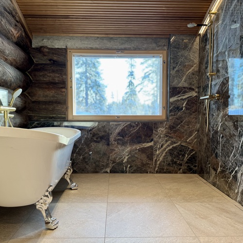 Varusteet: kylpyamme, lattialämmitys, suihku, kiinteät valaisimet