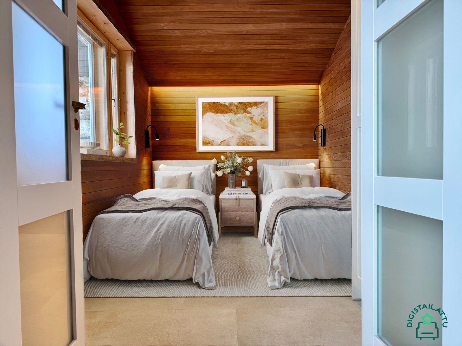 The materials used in the cottage are of the highest quality, and the space has been stylishly designed by a local interior architect. Now, you have the chance to personalize the interior and furnishings according to your own dreams and preferences.