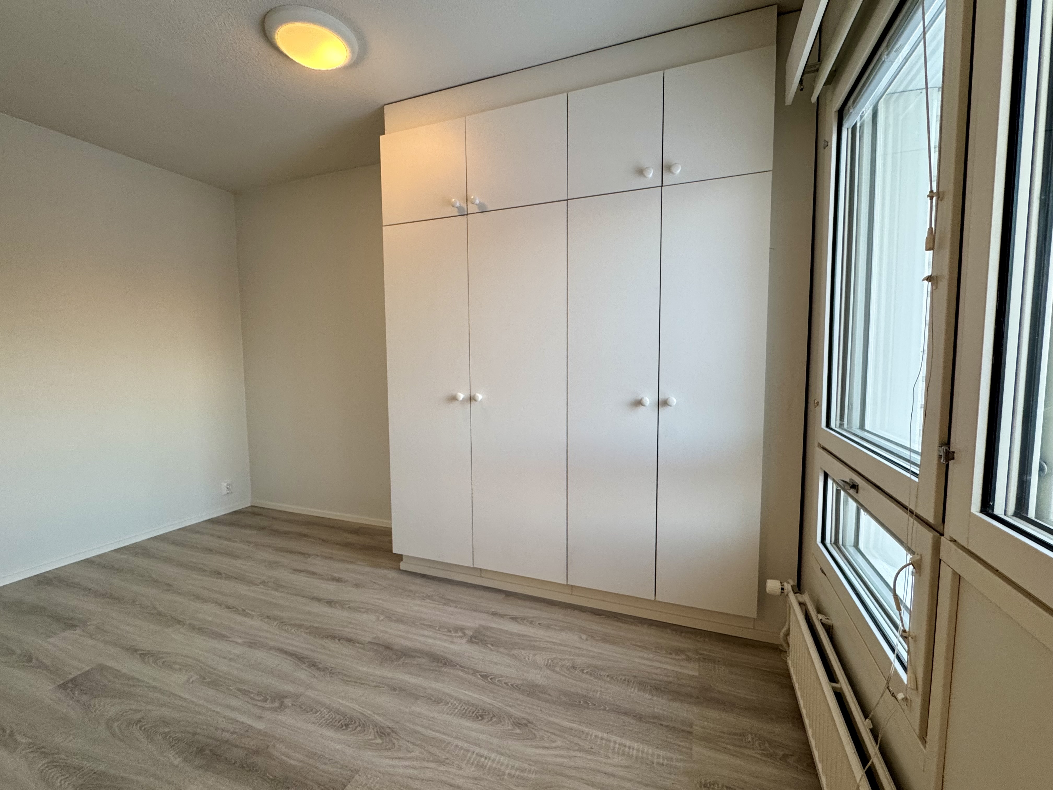 Varusteet: kaapistot, sälekaihtimet/rullaverhot, verhotangot, kiinteät valaisimet