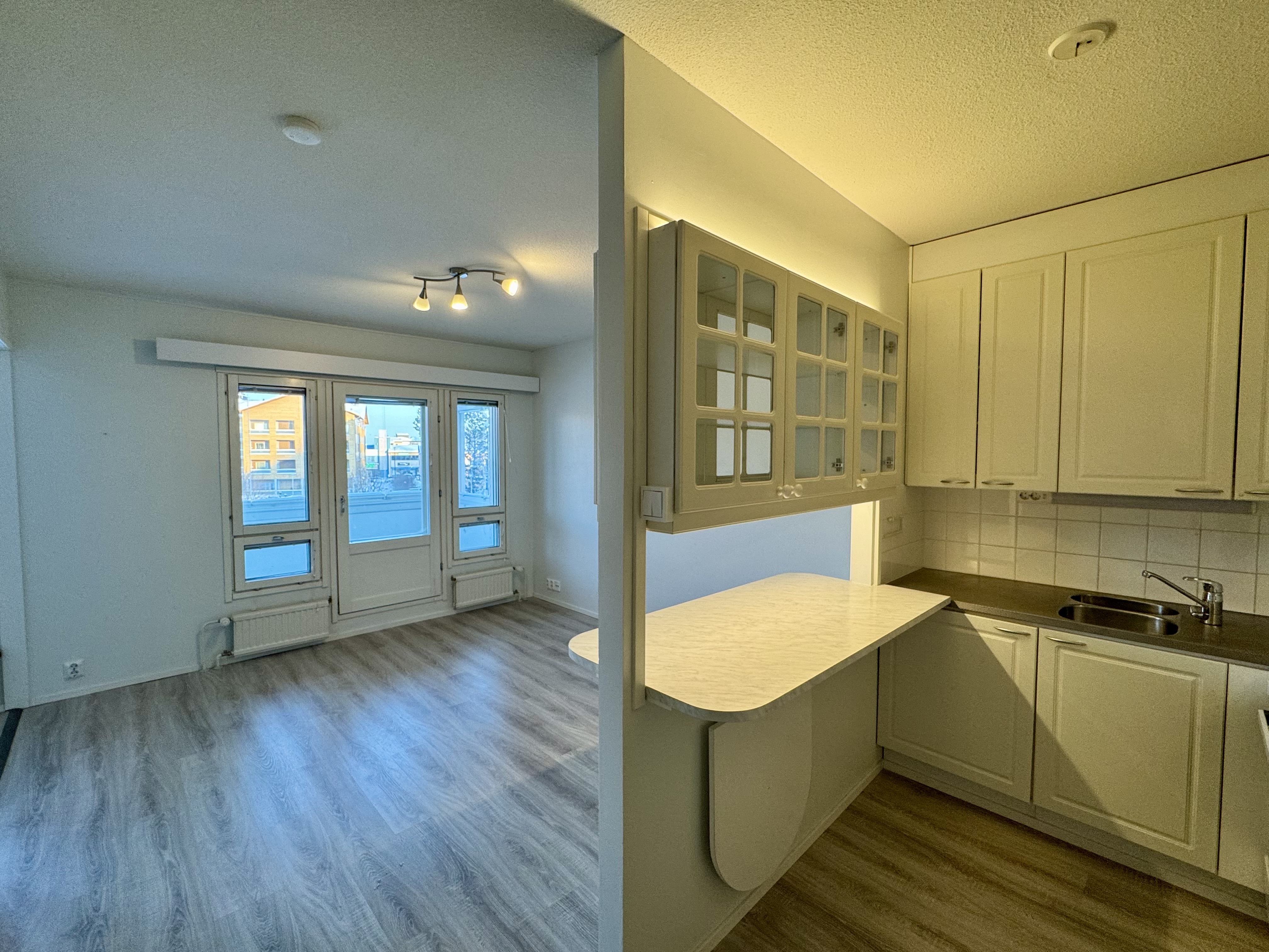 Kuusamon keskustassa sijaitseva ylimmän kerroksen kaksio.