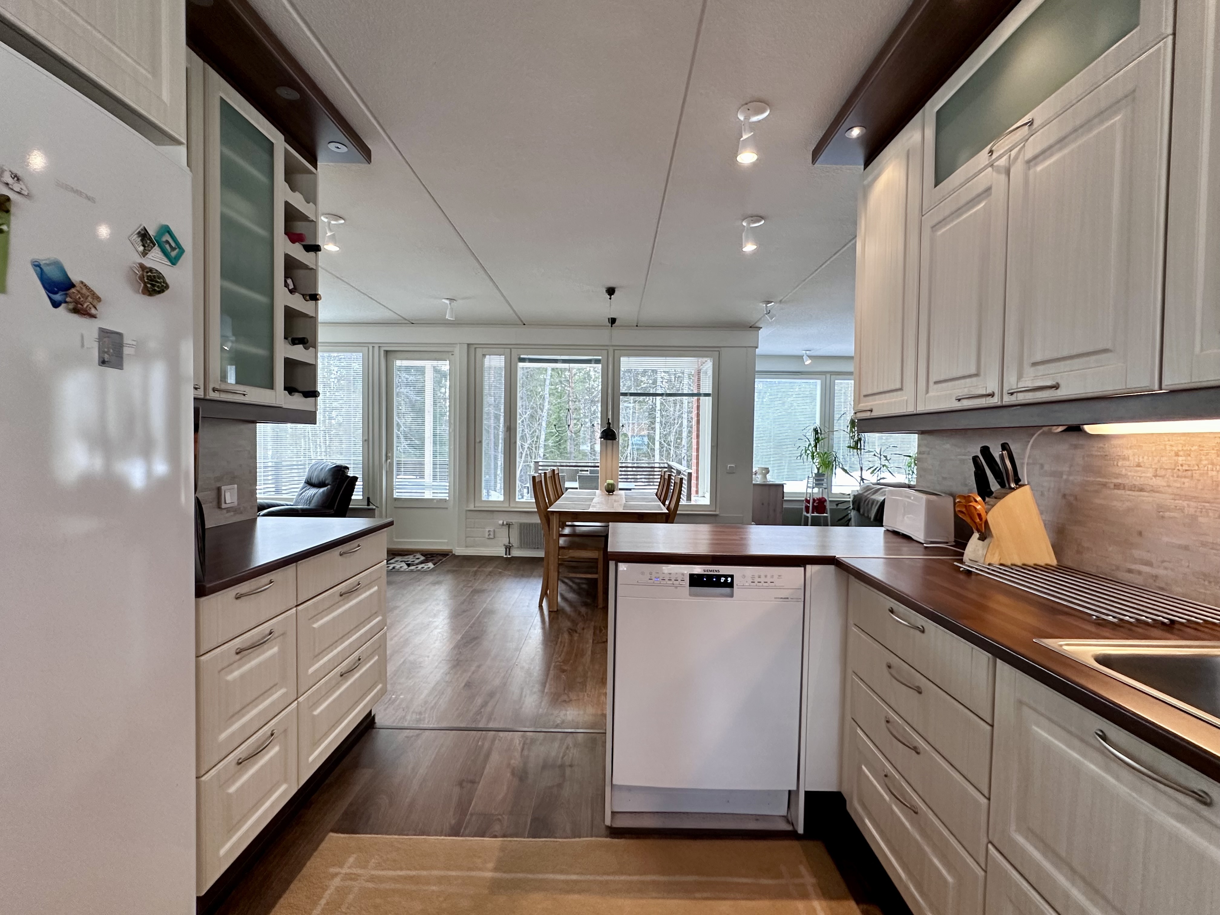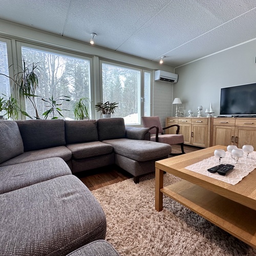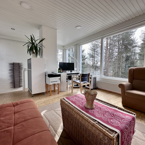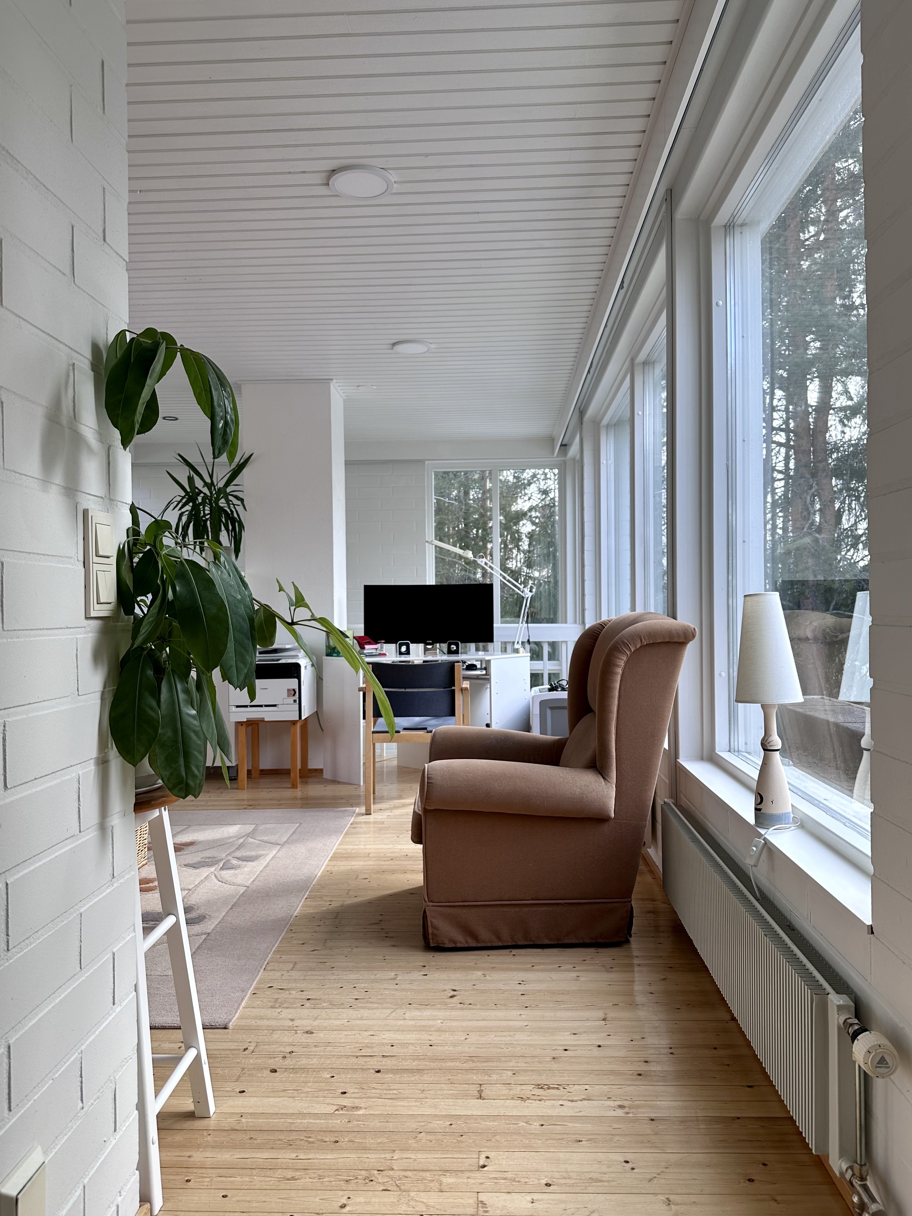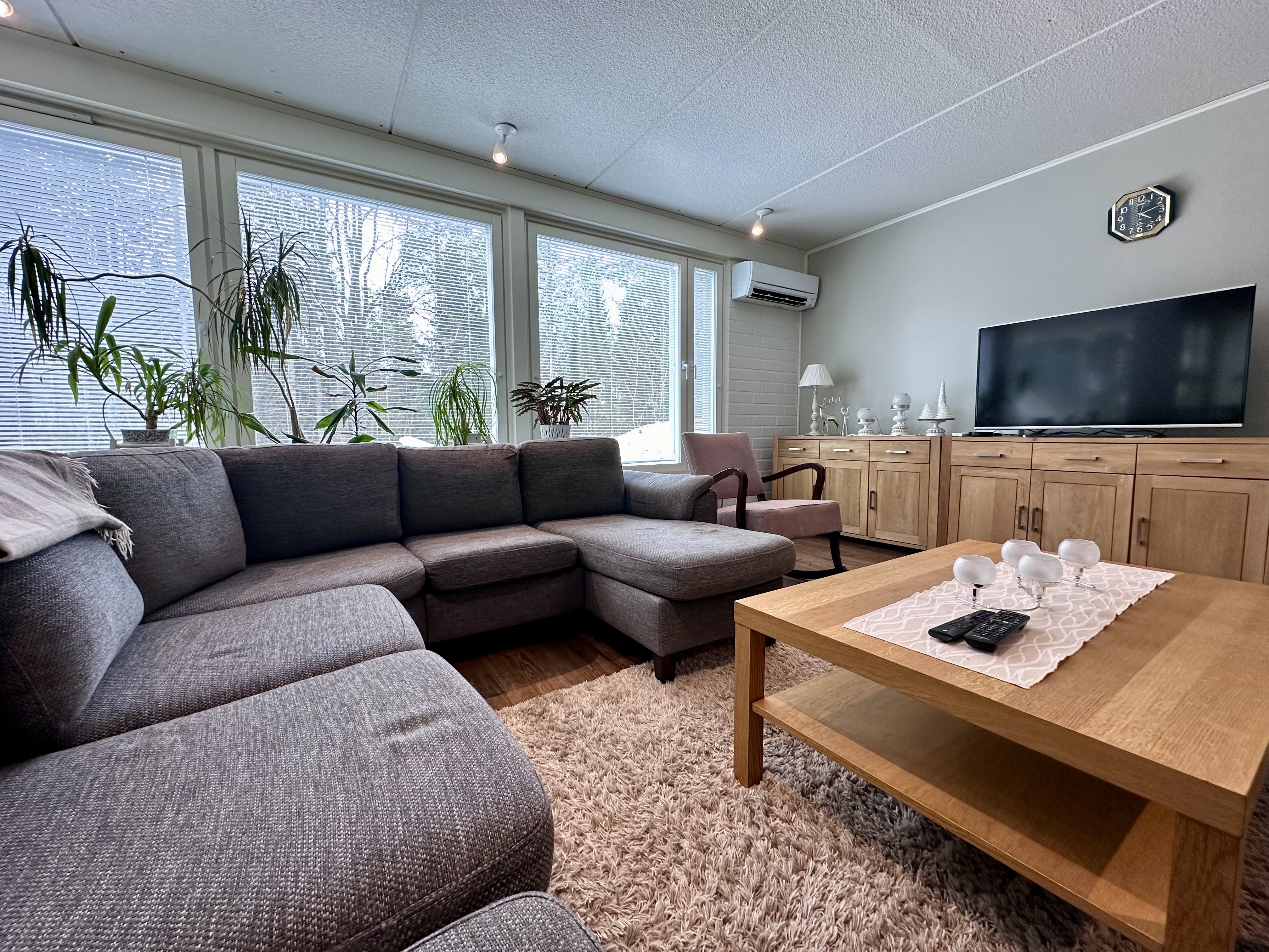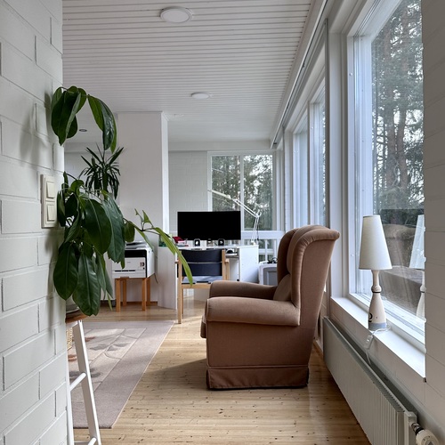Tämän asunnon loistava pohja ja isot ikkunat tarjoavat kauniita näkymiä niin asunnon sisällä kuin asunnosta ulos.