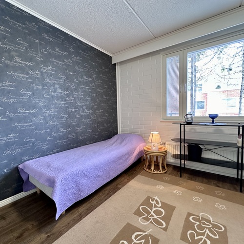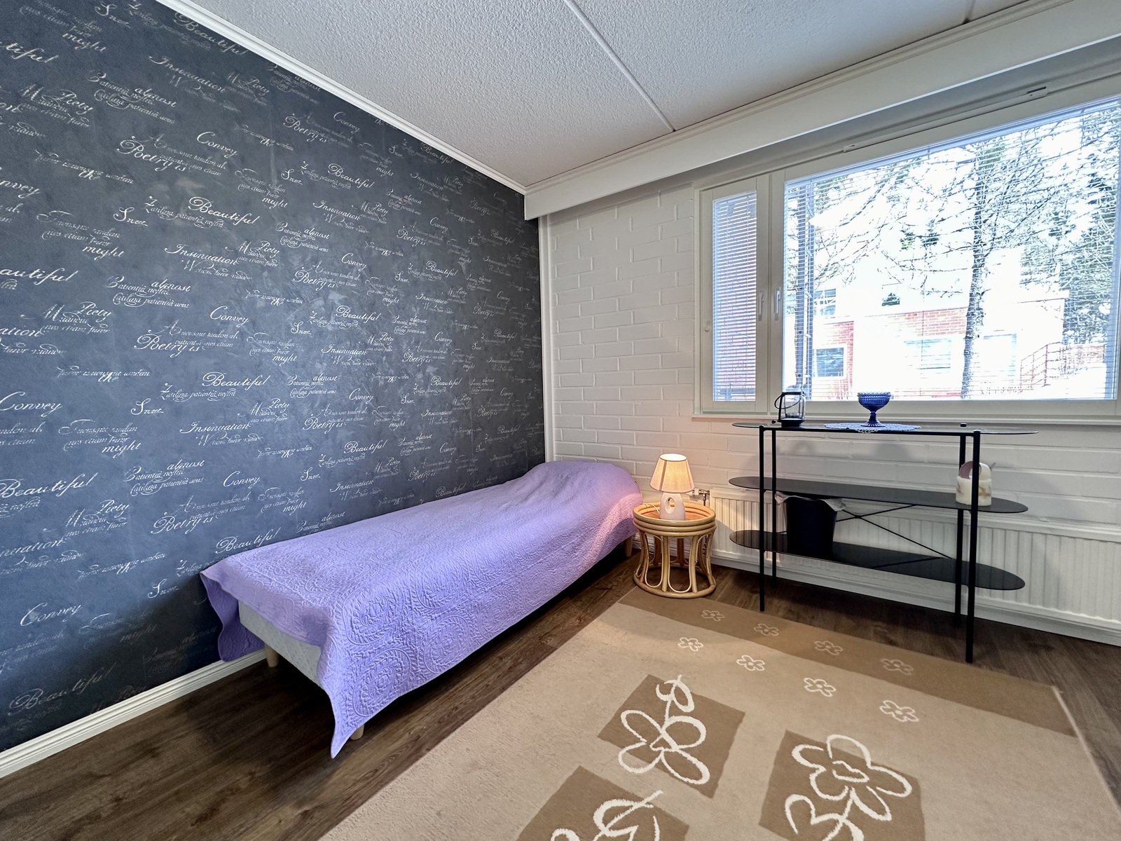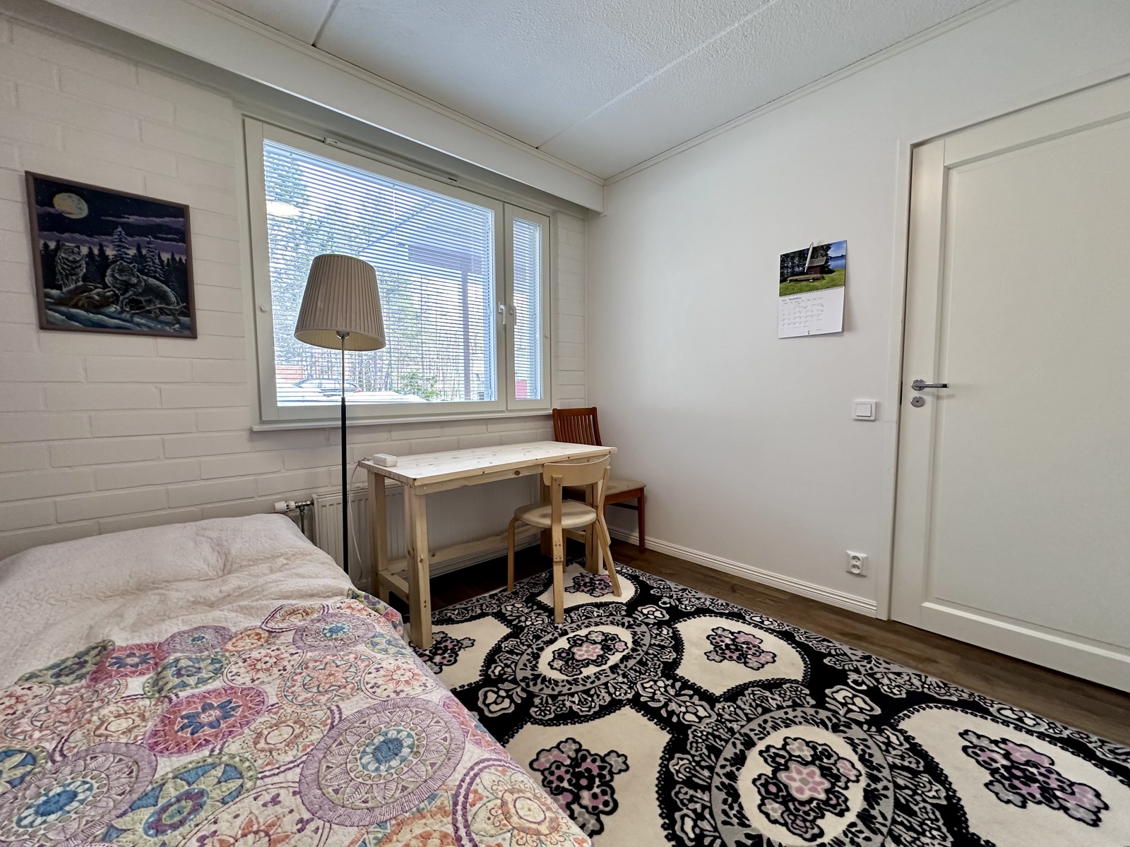 - kolmas makuuhuone (pihalle päin) vinyylilattia, kaapit, gyproc/maali/tapetti 2020, äänieristys