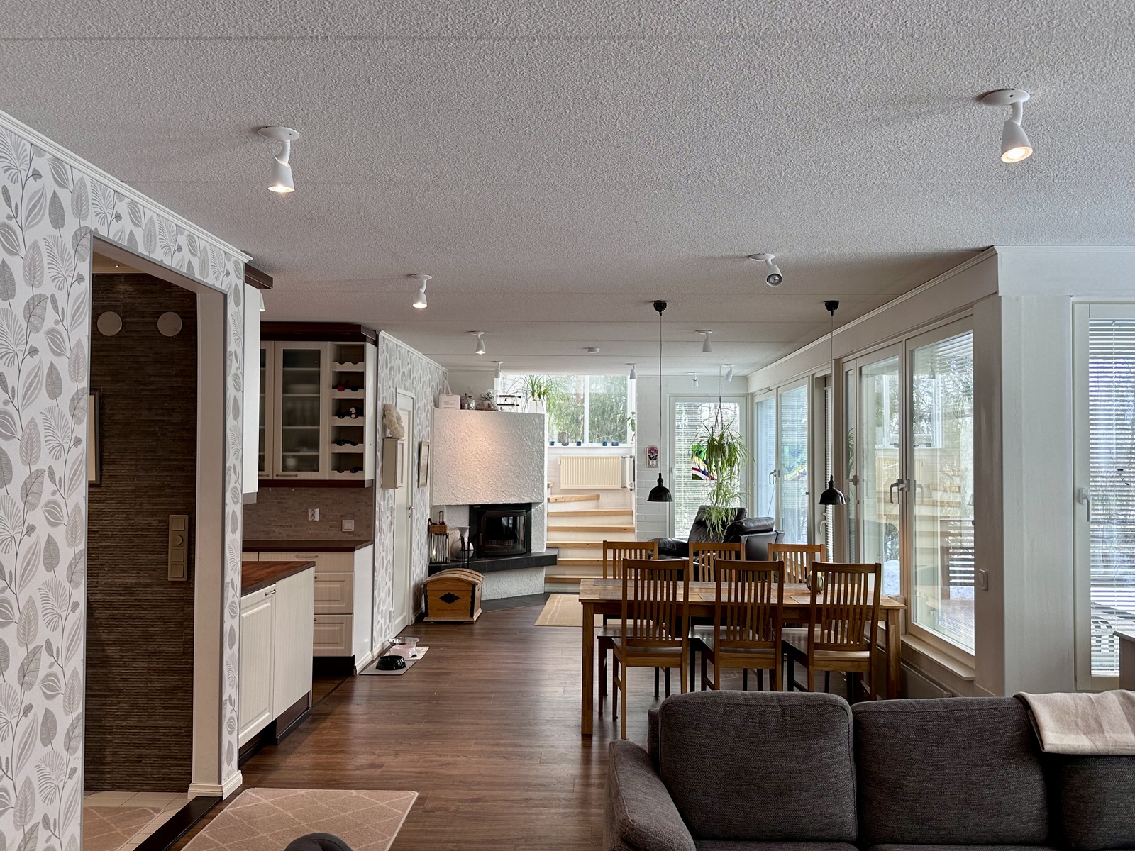 - lamput uusittu led-valoiksi 2019 (ei keittiön pöydän päällä olevat valaisimet, yläkerran vaatehuone ja yläkerran wc)