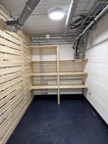 Säilytystilaa löytyy hyvin eteisen- ja makuuhuoneen kaapistoista, kellarikerroksessa lisäksi häkkivarasto.