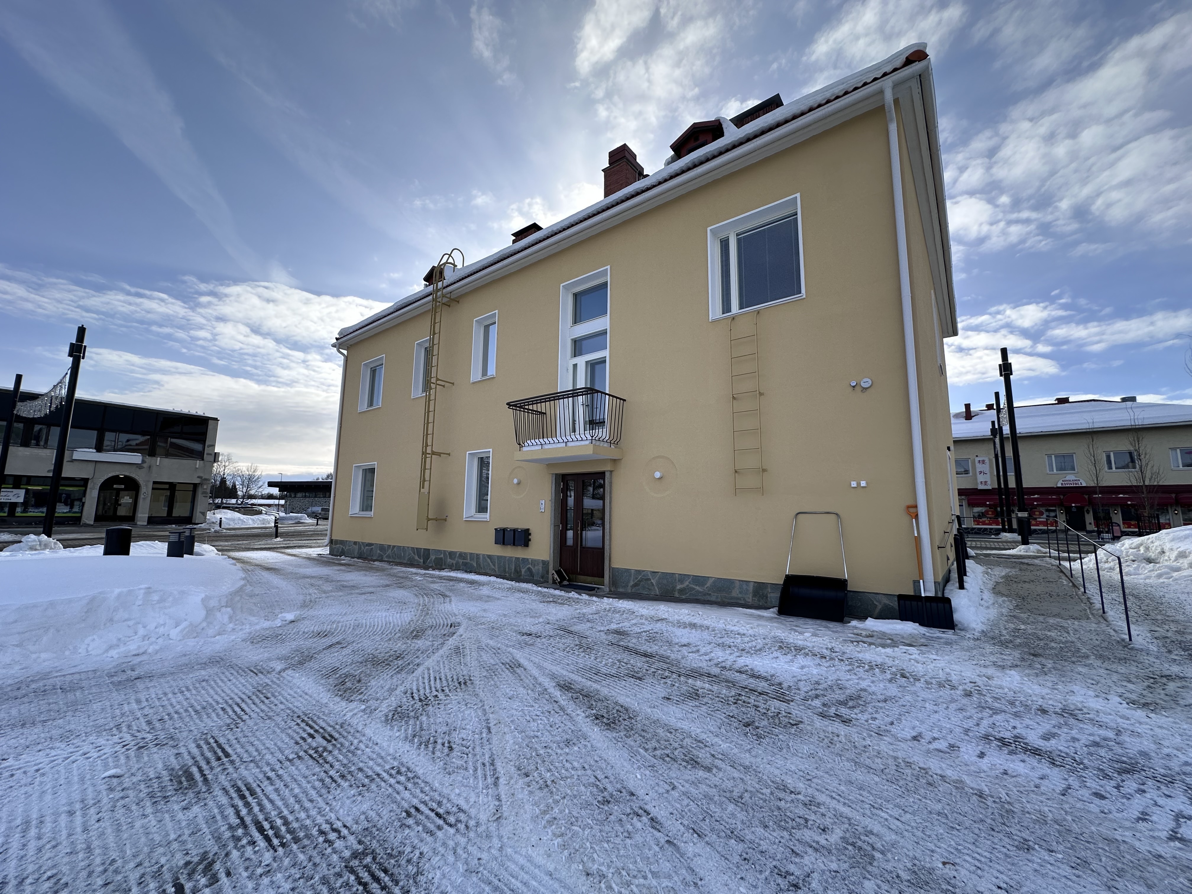 Asunnossa tilavat ja valoisat huoneet. Olohuone-keittiön ikkunoista näkymät Kuusamon ydinkeskustan uusittuun ja viihtyisään katukuvaan, makuuhuoneen ikkunat takapihalle päin.