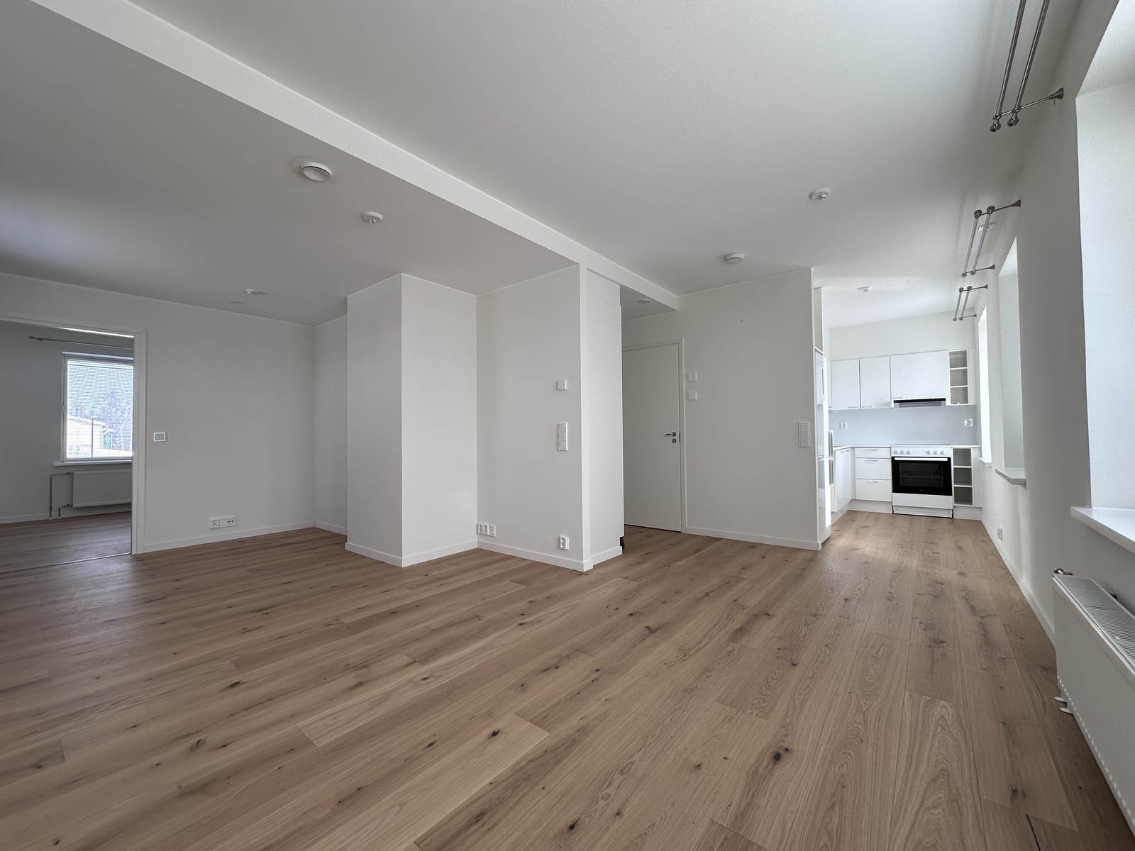 Vuokralle tarjotaan täysin saneeratusta Yhdyskulman rakennuksesta toisen kerroksen saunallinen kaksio 53 m².