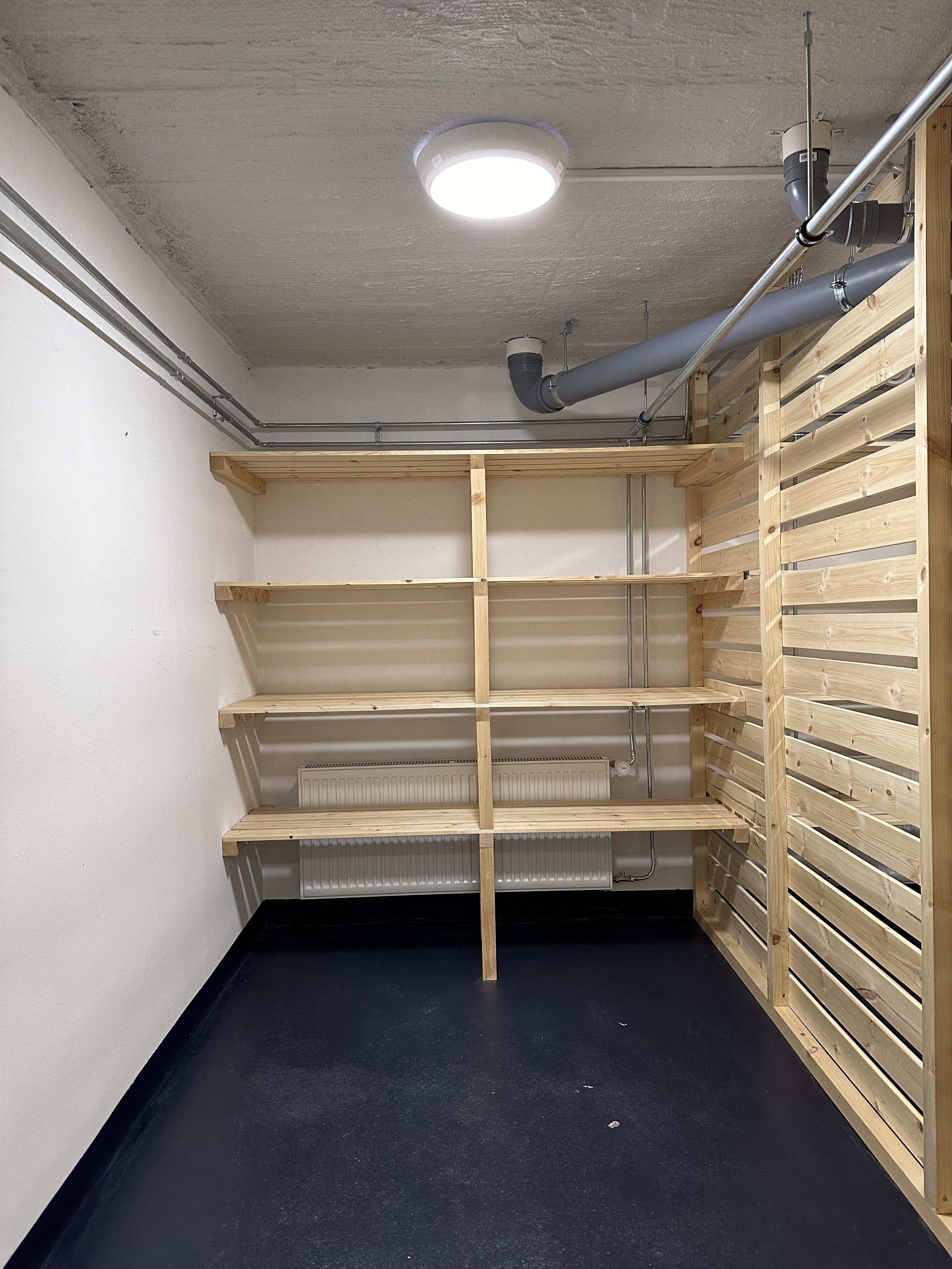 Säilytystilaa löytyy hyvin eteisen- ja makuuhuoneiden kaapistoista, kellarikerroksessa lisäksi häkkivarasto.