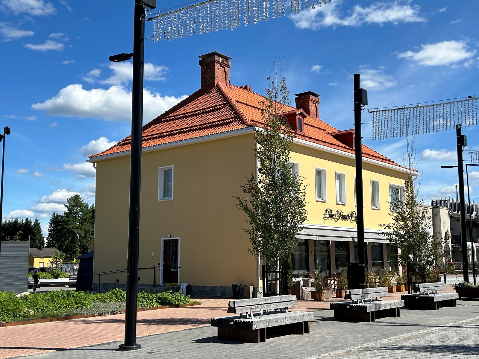 Asunnossa myös takka tunnelmaa tuomassa ja mikäpä sen ihanampaa kuin käydä alakerran kahvilasta hakemassa tuoreet herkut vaikkapa aamiaispöytään!